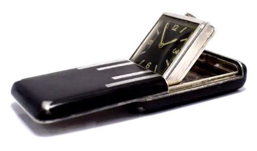 Art Deco Solid Silver Miniature Flip Up Travel Clock by Rotary, circa 1933