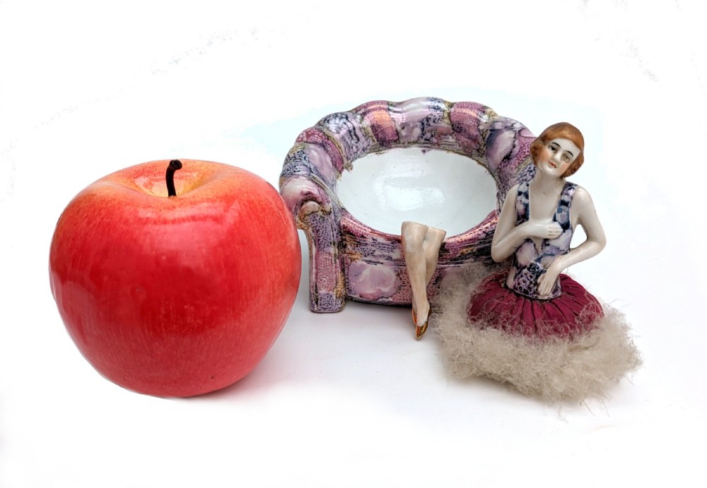 Art Deco Ceramic Flapper Powder Puff Stand, C1930