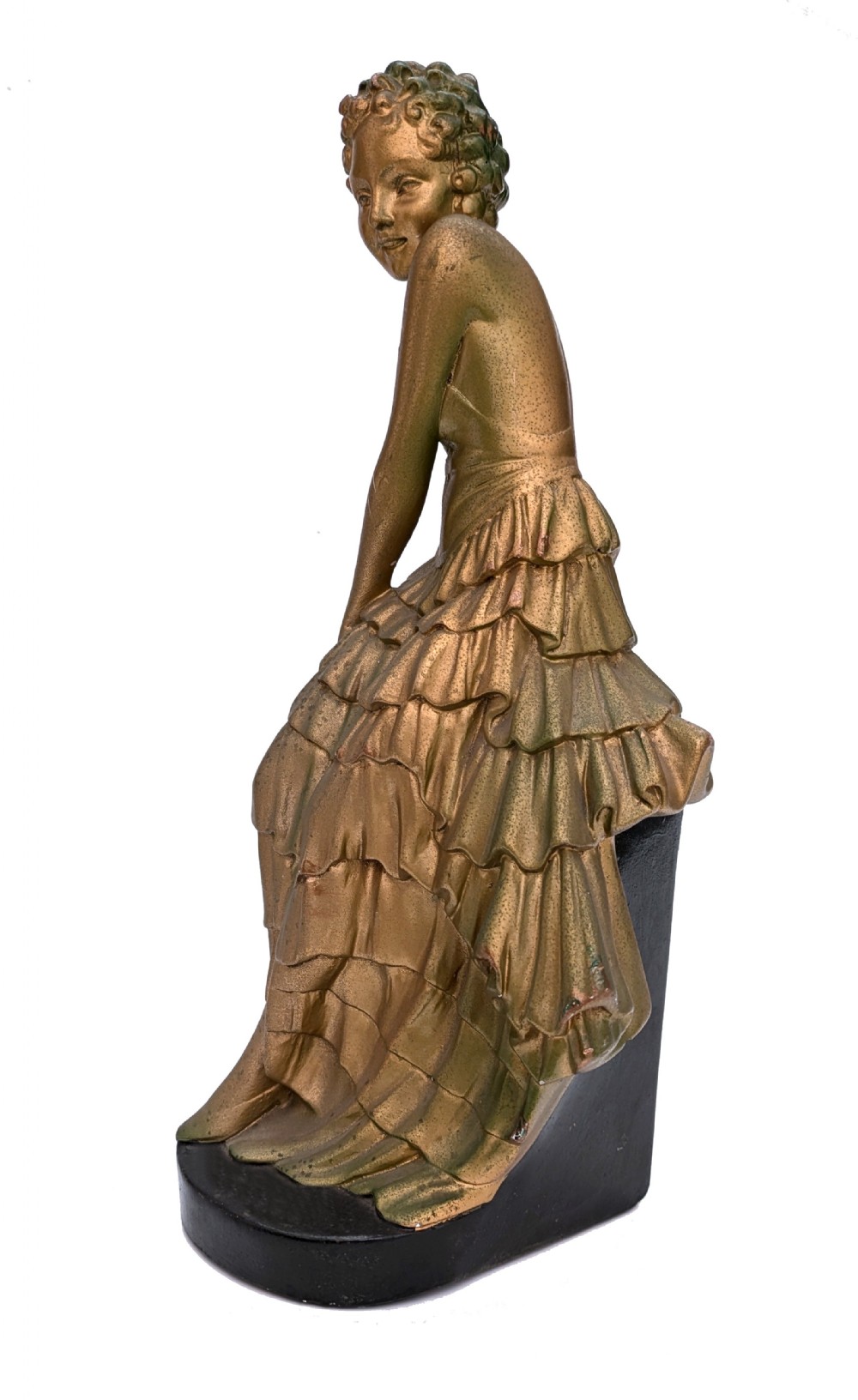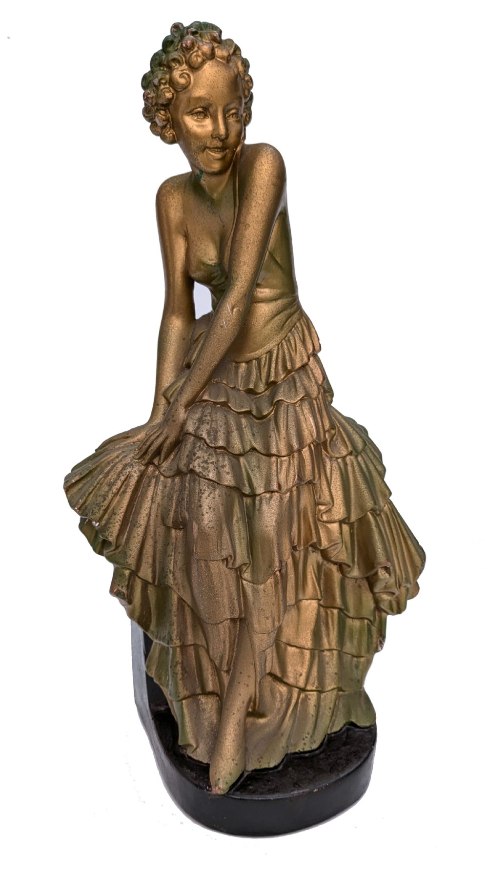 Superb 1930's Art Deco large figure made from underwired plaster, Totally authentic. This is NOT a modern reproduction . A lovely lady who makes a big statement ! Condition is very very good considering that this type of figure is very vulnerable to damage . The registration marks are clearly visible - see pics . There are one or two minor marks as you would expect for its age . However , on display it looks almost perfect . FREE UK DELIVERY UK customers: we want you to be delighted with your purchases from us and so we offer a full money back guarantee (items must be returned within 14 days in same condition as when sent) if you are not fully satisfied with your purchases from us for what ever reason and would like to return them. Please note : Shipping costs are not refundable. Refunds are only issued once an item has been returned back to us. Refunds are issued within 48 hours in receipt of return.