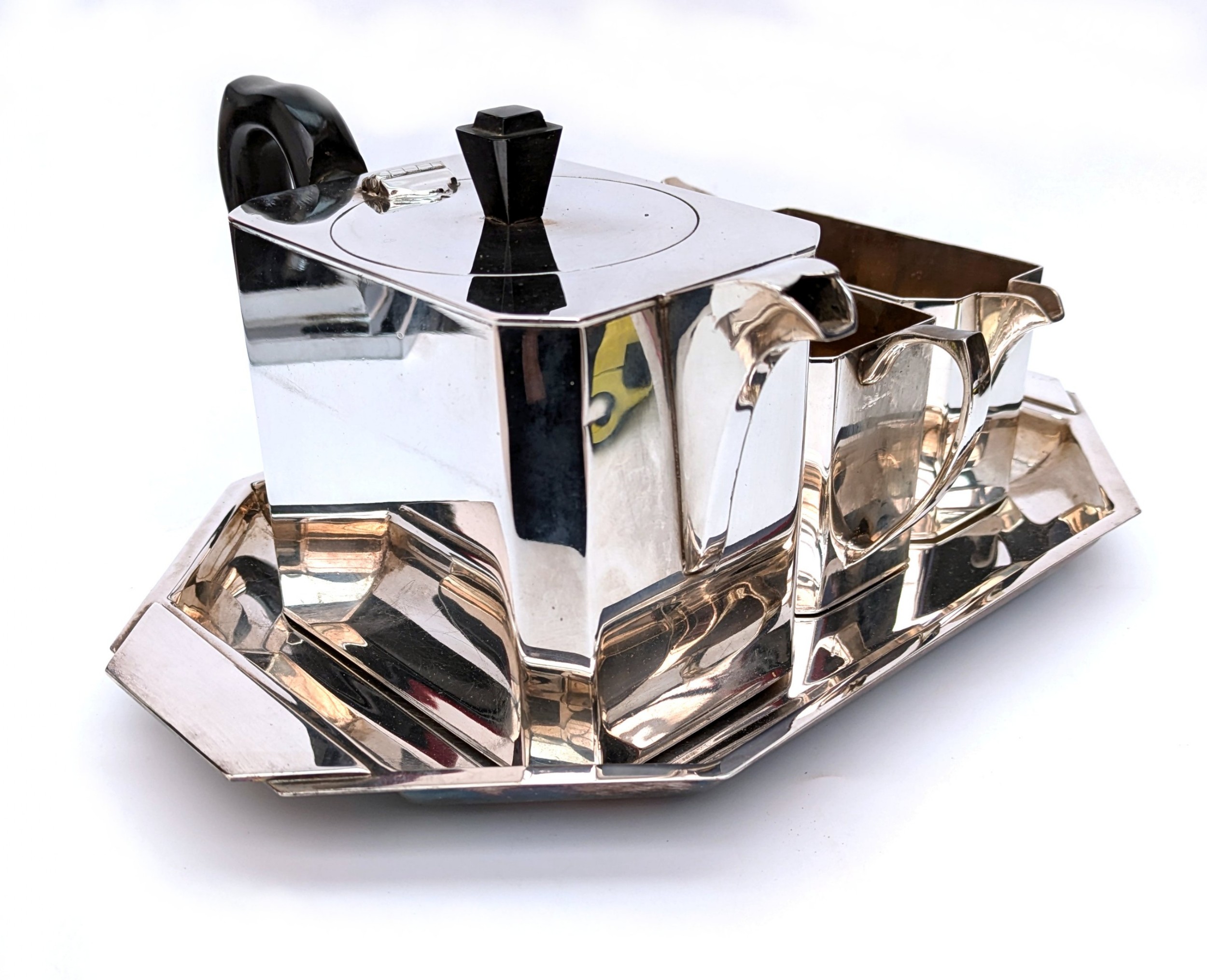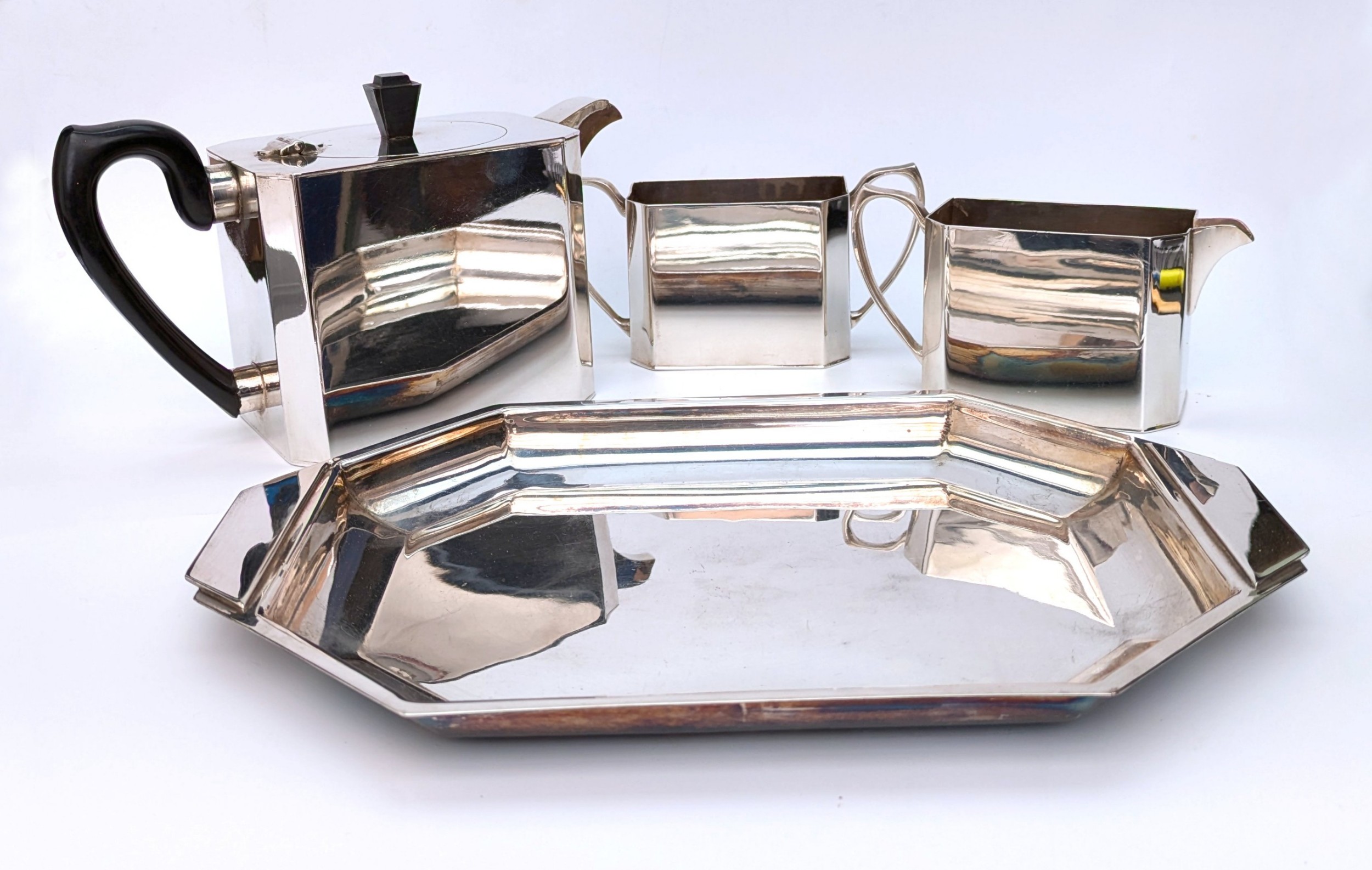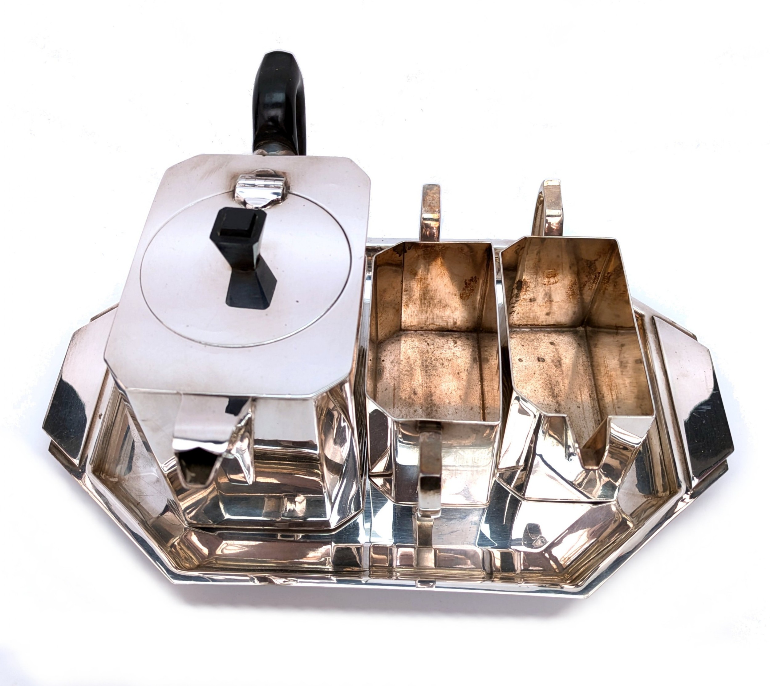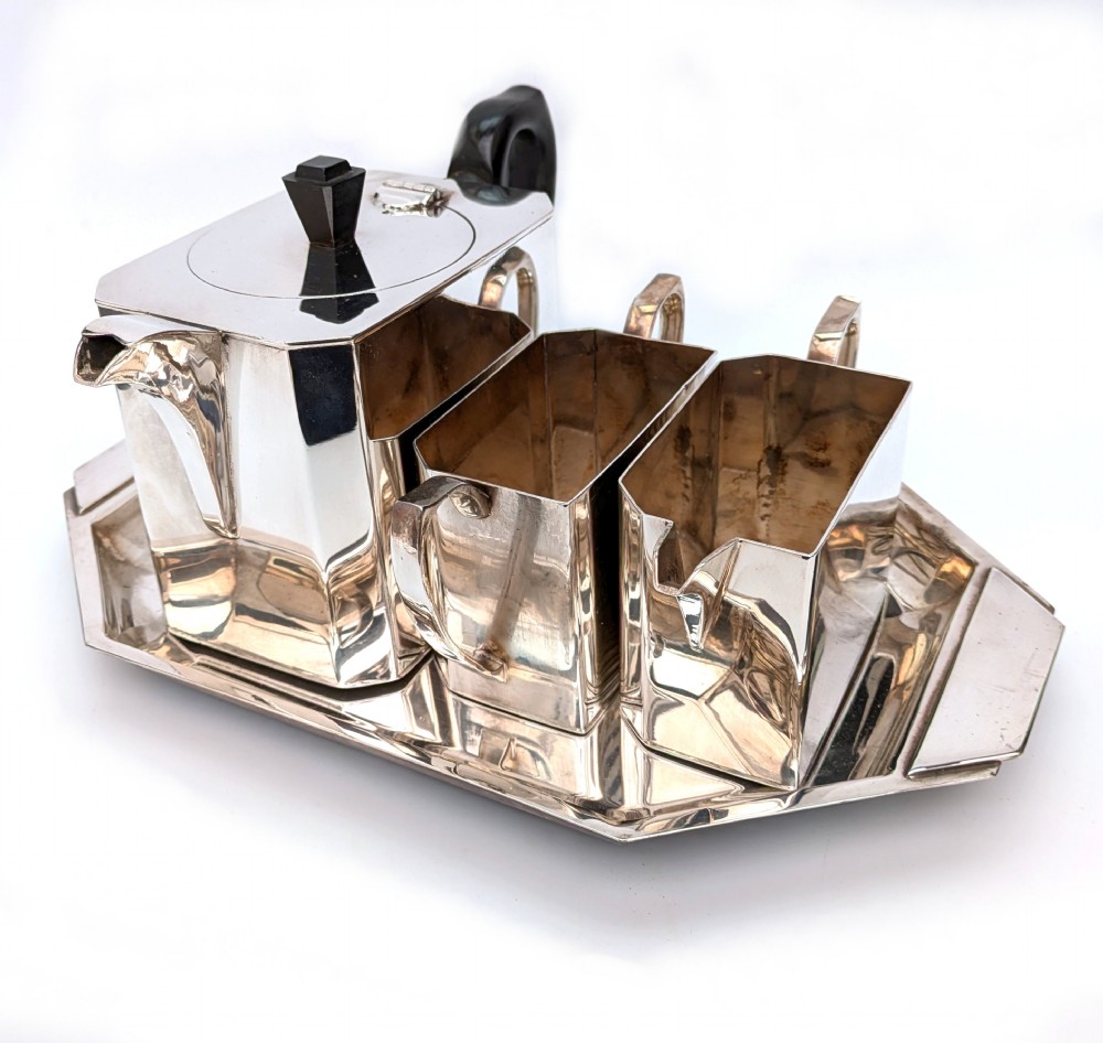 Art Deco Silver Plated Cube T-set With Tray By Marples. Wingfield & Wilkins of Sheffield