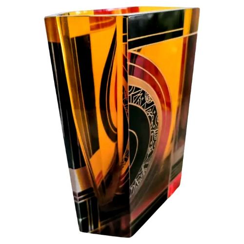 Rare and very stylish geometric patterned vase by a Karl Palda. Standing a good 22 cm tall has all the bells and whistles you want from this era. One of our personal favourites beautiful in both the design & quality. Beautiful acid etched detailing . Lovely condition, no flaws to note. Decorated both sides, displays beautifully and will certainly make an impact in any Deco setting. Pure class. We haven't had this design before so quite a rare find and one we know the new Deco admirer will fully appreciate. Photographed in natural day light. Art Deco design at its finest. FREE UK DELIVERY UK customers: we want you to be delighted with your purchases from us and so we offer a full money back guarantee (items must be returned within 14 days in same condition as when sent) if you are not fully satisfied with your purchases from us for what ever reason and would like to return them. Please note : Shipping costs are not refundable. Refunds are only issued once an item has been returned back to us. Refunds are issued within 48 hours in receipt of return.