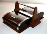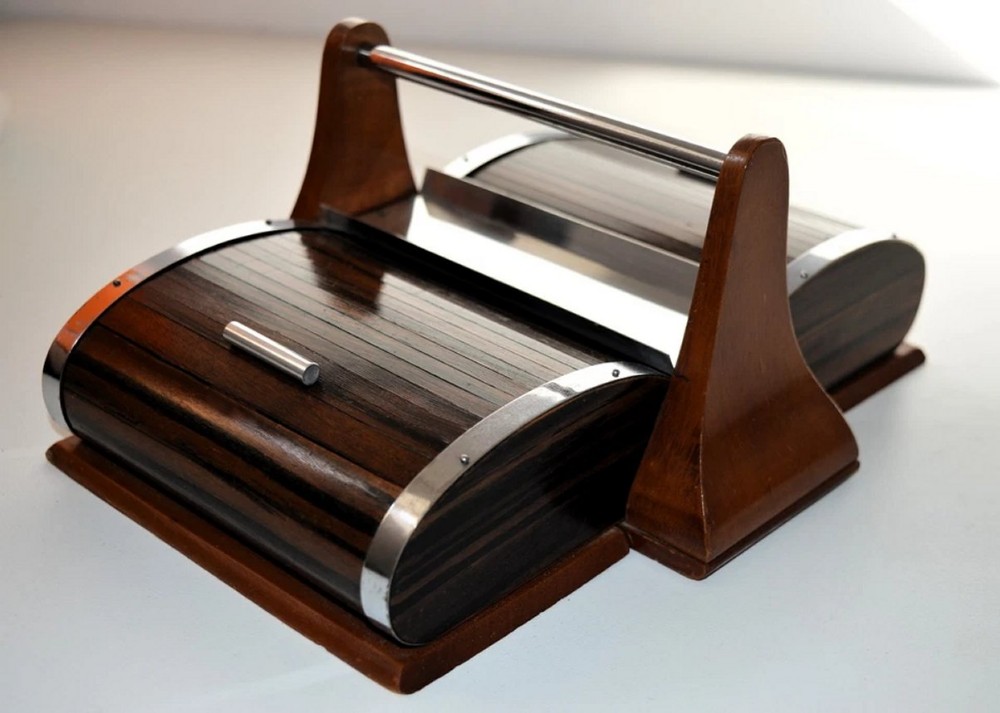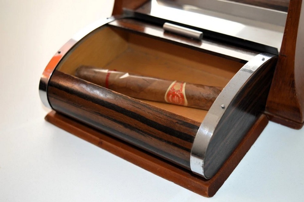 art deco walnut roll top cigar cady with chrome trim french c1930
