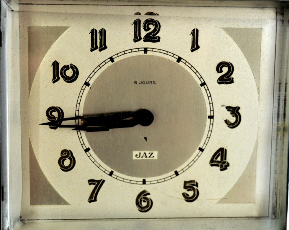 Art Deco Chrome and Bakelite Clock By Jaz Clockmakers, French, c1930