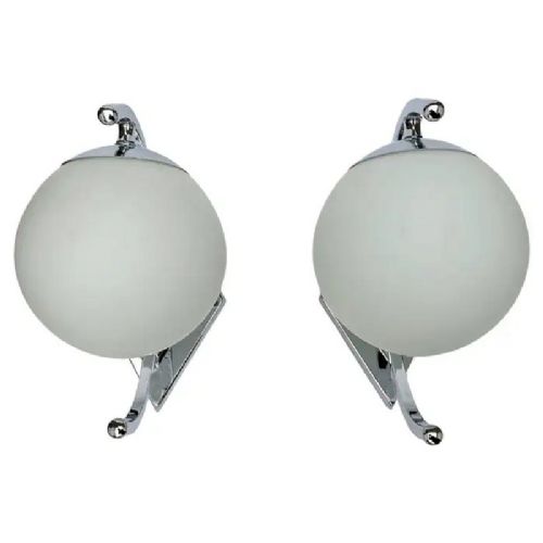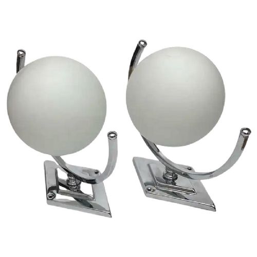 Art Deco Opaline Glass & Chrome Pair of Wall Lights, Sconces , c1930