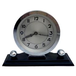 Stylish Art Deco Small Marble & Chrome Clock With Alarm By DEP, French, C1930