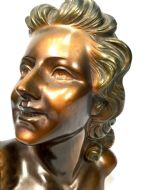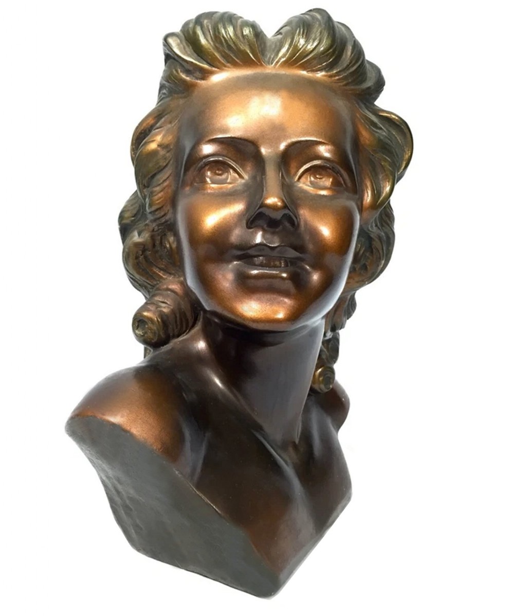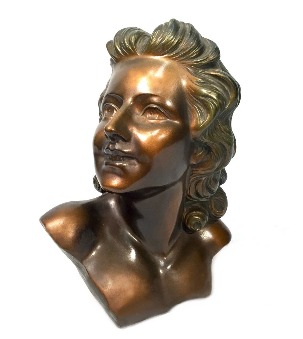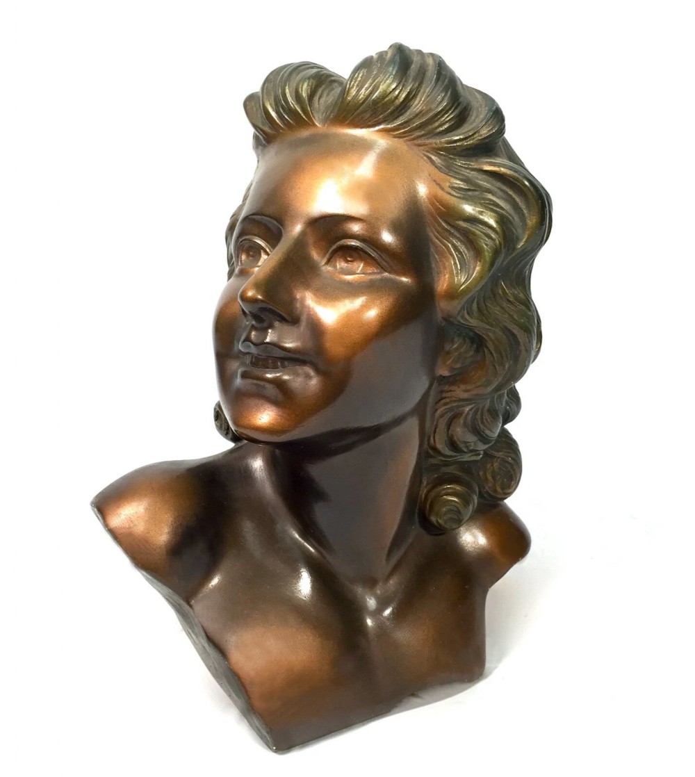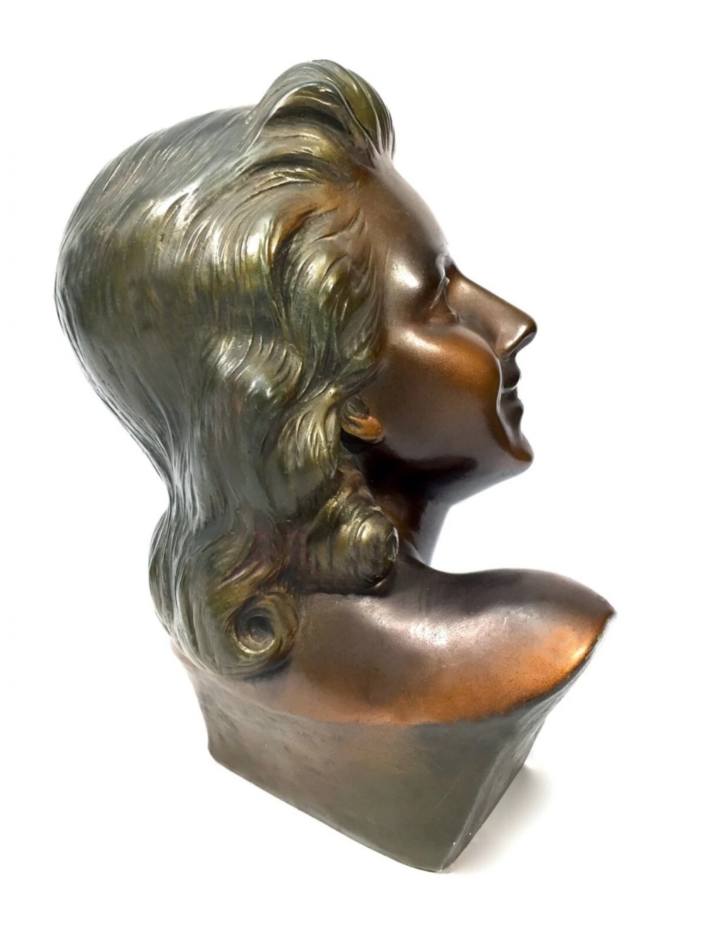 Very attractive French Art Deco bust of very high quality. Totally authentic and in excellent condition. Made from Plaster she weighs quite heavy. This bust is the perfect size for display, originally quite possibly used as a shop mannequin. She dates to the late 1930's and is beautifully cast. She's a bronze finish with tints of green in her hair, lovely detailing. FREE UK Mainland delivery UK customers: we want you to be delighted with your purchases from us and so we offer a full money back guarantee (items must be returned within 14 days in same condition as when sent) if you are not fully satisfied with your purchases from us for what ever reason and would like to return them. Please note : Shipping costs are not refundable. Refunds are only issued once an item has been returned back to us. Refunds are issued within 48 hours in receipt of return.