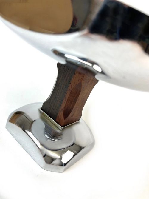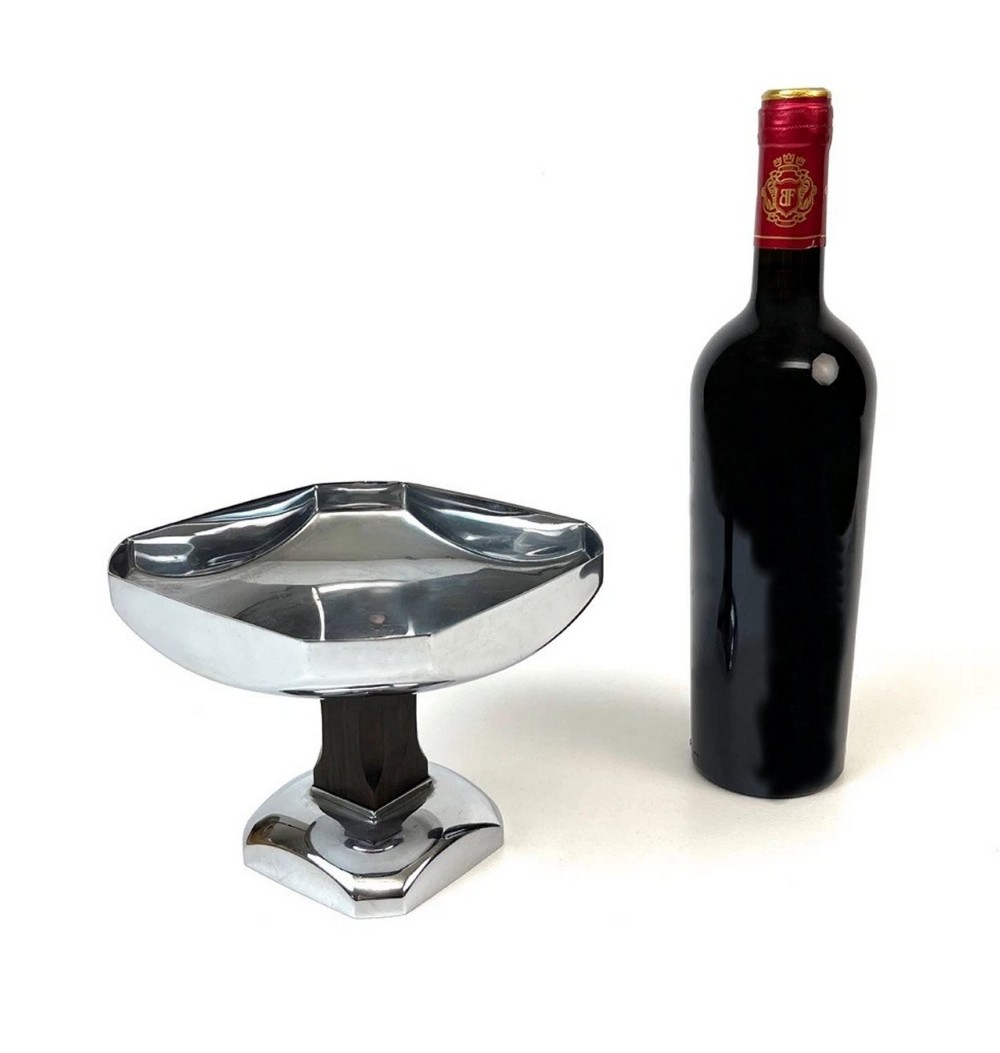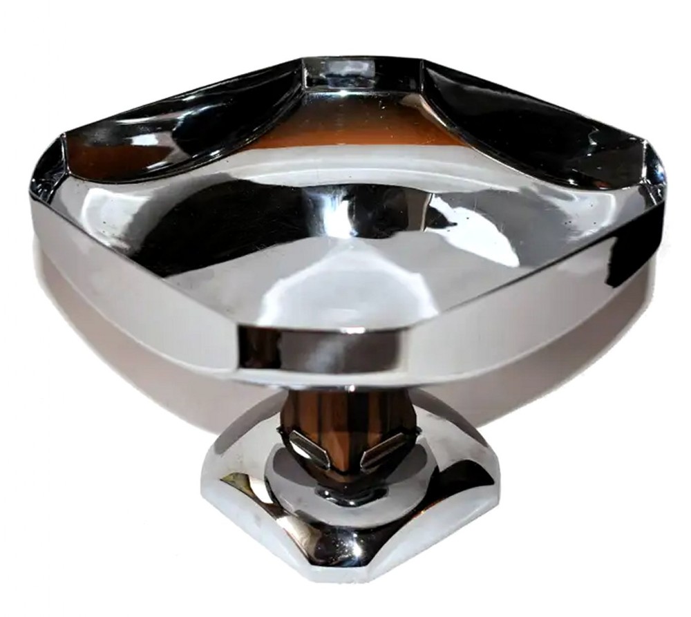 Very stylish 1930s modernist chrome coupe fruit bowl. Originating from France, this comport would make a great centrepiece to any table setting. The pedestal is Macassar ebony which contrasts beautifully with the chrome bowl. Ideal for your dinner table or side table. Totally original with no restorations. Condition whilst not pristine in well above average and hasn't nothing to distract. Lovely size for modern day use, this piece definitely won't disappoint. FREE UK Mainland delivery UK customers: we want you to be delighted with your purchases from us and so we offer a full money back guarantee (items must be returned within 14 days in same condition as when sent) if you are not fully satisfied with your purchases from us for what ever reason and would like to return them. Please note : Shipping costs are not refundable. Refunds are only issued once an item has been returned back to us. Refunds are issued within 48 hours in receipt of return.