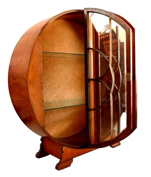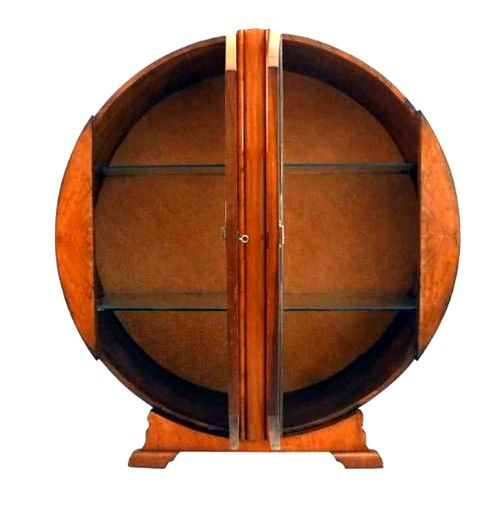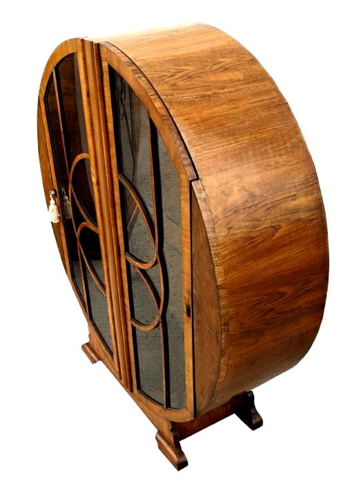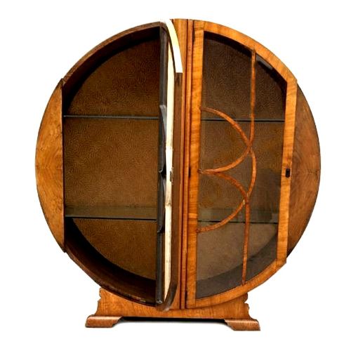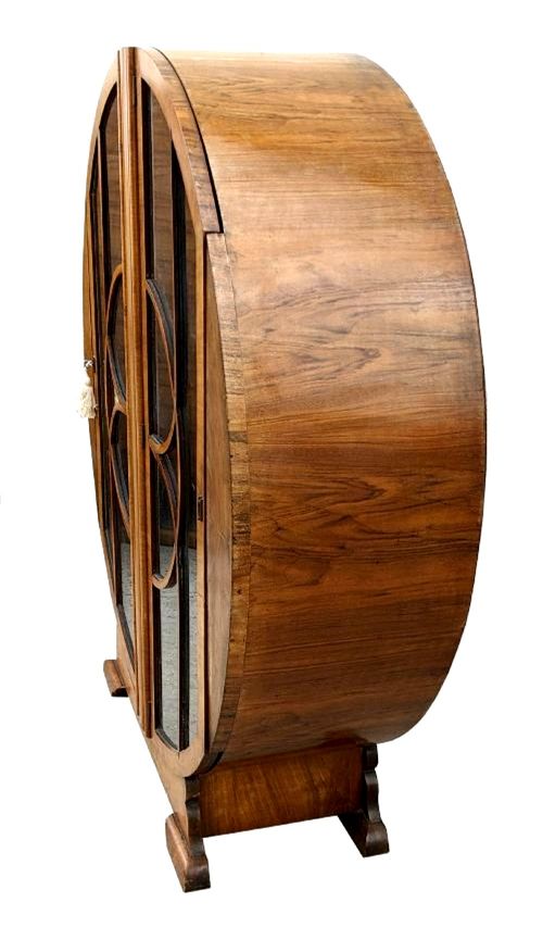 Art Deco Figured Walnut Circular Display Cabinet, c1930