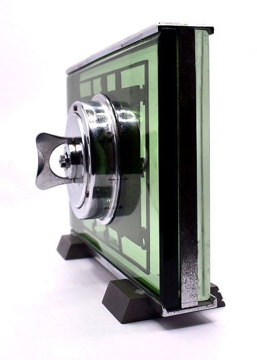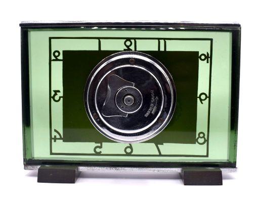 Art Deco 8 Day Modernist Green Glass Clock, c1930