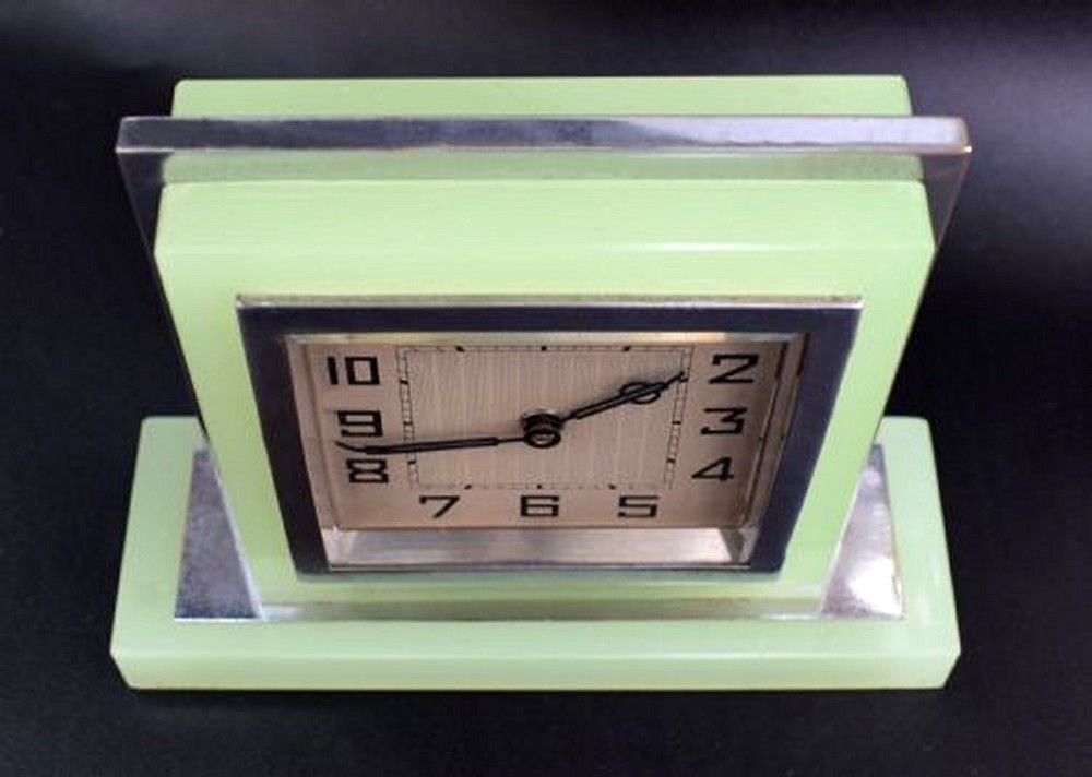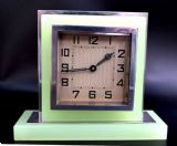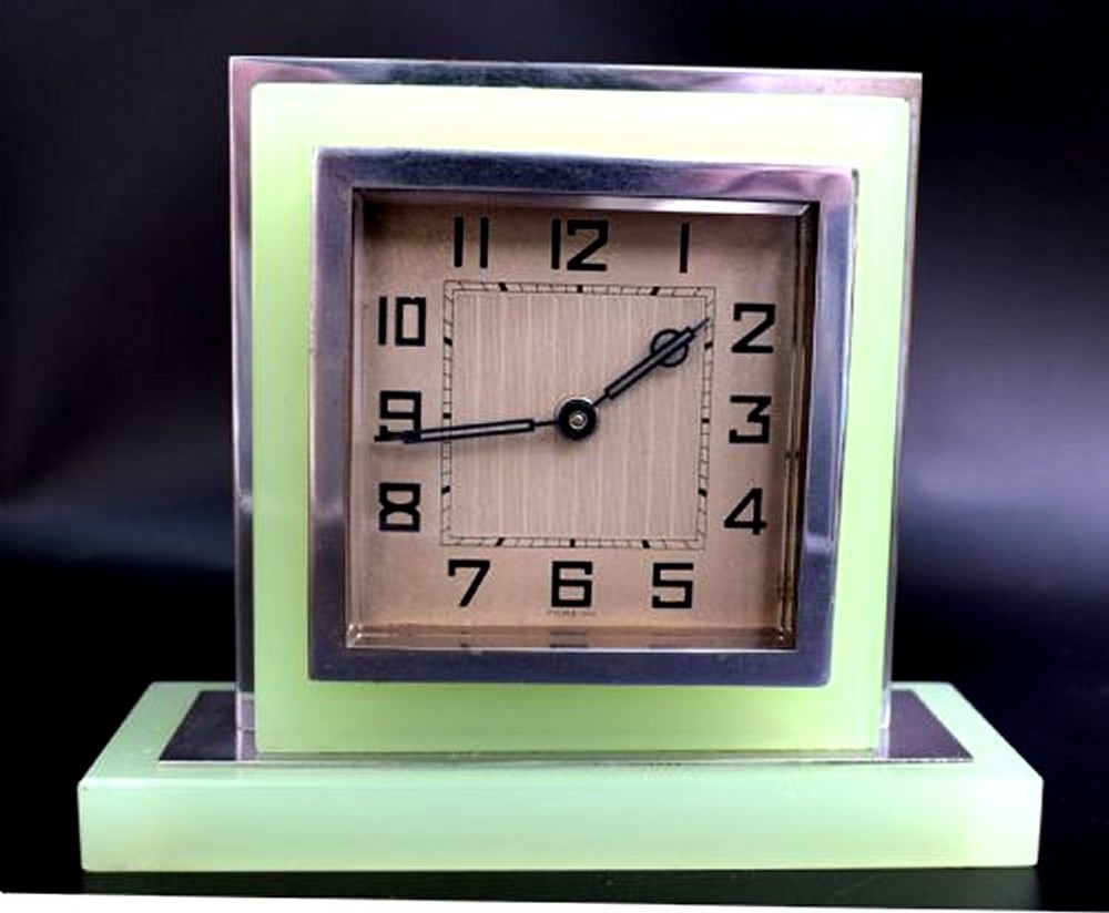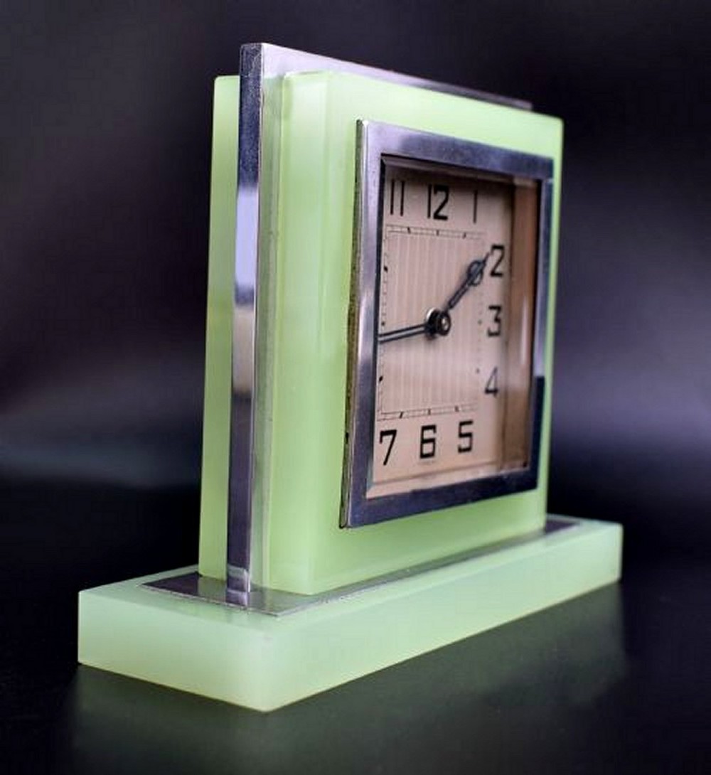Art Deco Opaline Uranium Glass & Chrome Clock, c1930