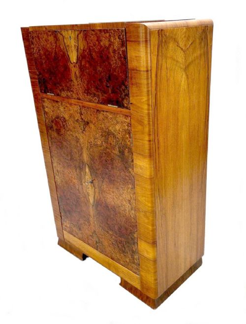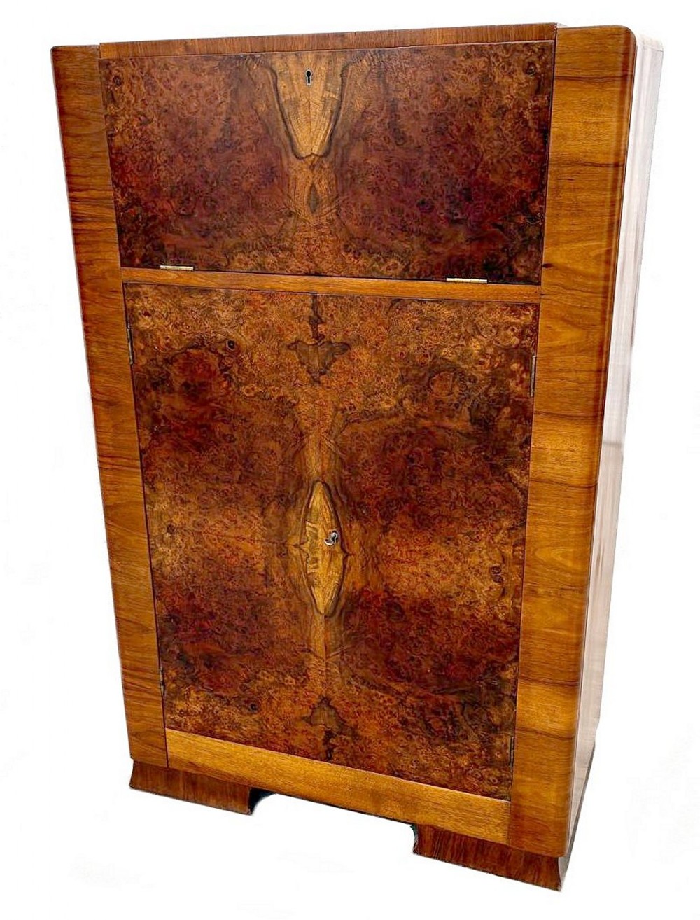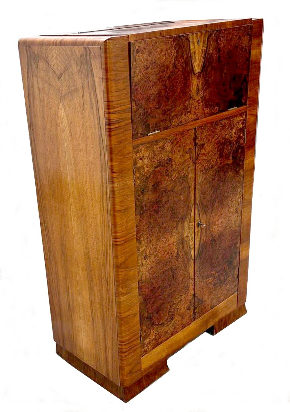 Art Deco Figured Walnut Dry Bar Cocktail Cabinet, c1930