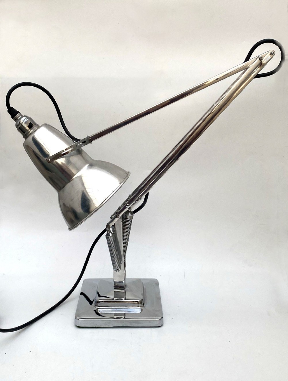 For your consideration is this fabulous Anglepoise lamp by Herbert Terry, England. Originally these lamps had a painted finished , this example has been fully stripped down re-chromed and re-wired. In perfect working order this lamp is a design classic. Weighted base means this lamp is deceptively heavy. The lamp can be placed to many angles, the hood is also rotational. Very attractive stepped base. Condition is very good with minimal signs of age, just the odd blemish if you go searching. For international customers we can provide an adaptor plug so you can use the lamp without having to re-wire. Height when fully extended is 92 cm SIZE:-14" and 12" long arms , 6" x 6" base , 5.75" wide shade Offered with FREE UK mainland delivery UK customers: we want you to be delighted with your purchases from us and so we offer a full money back guarantee (items must be returned within 14 days in same condition as when sent) if you are not fully satisfied with your purchases from us for what ever reason and would like to return them. Please note : Shipping costs are not refundable. Refunds are only issued once an item has been returned back to us. Refunds are issued within 48 hours in receipt of return.