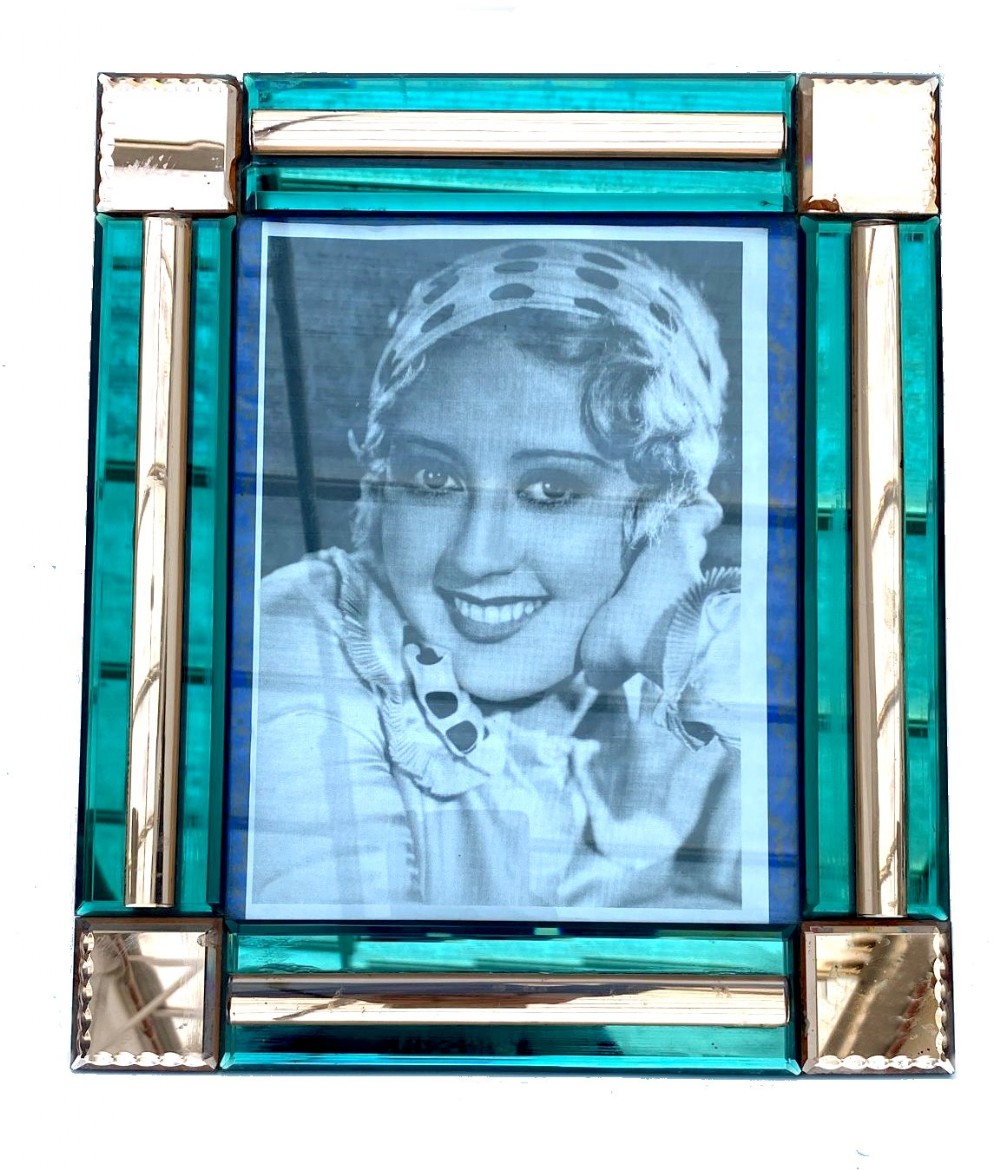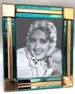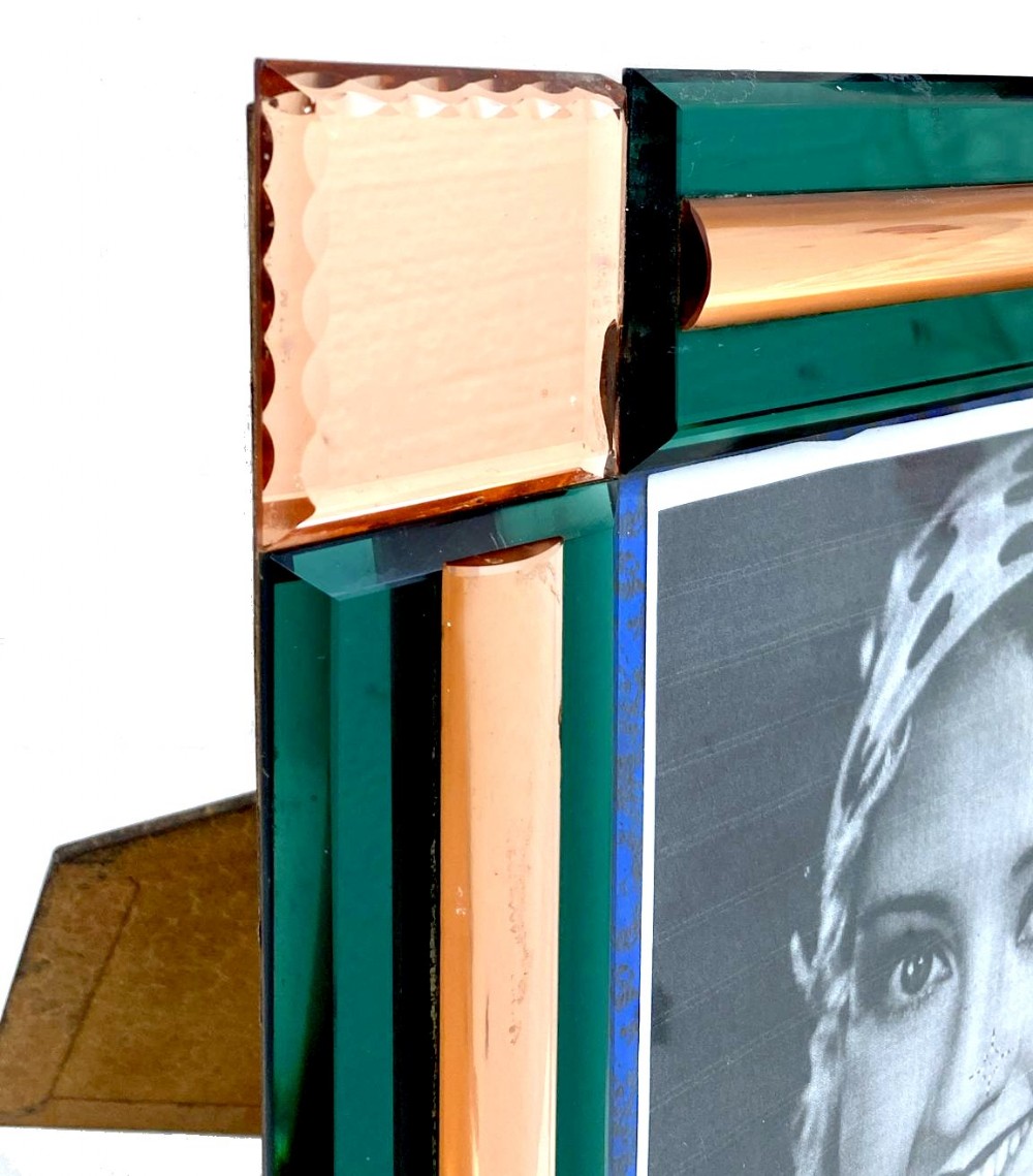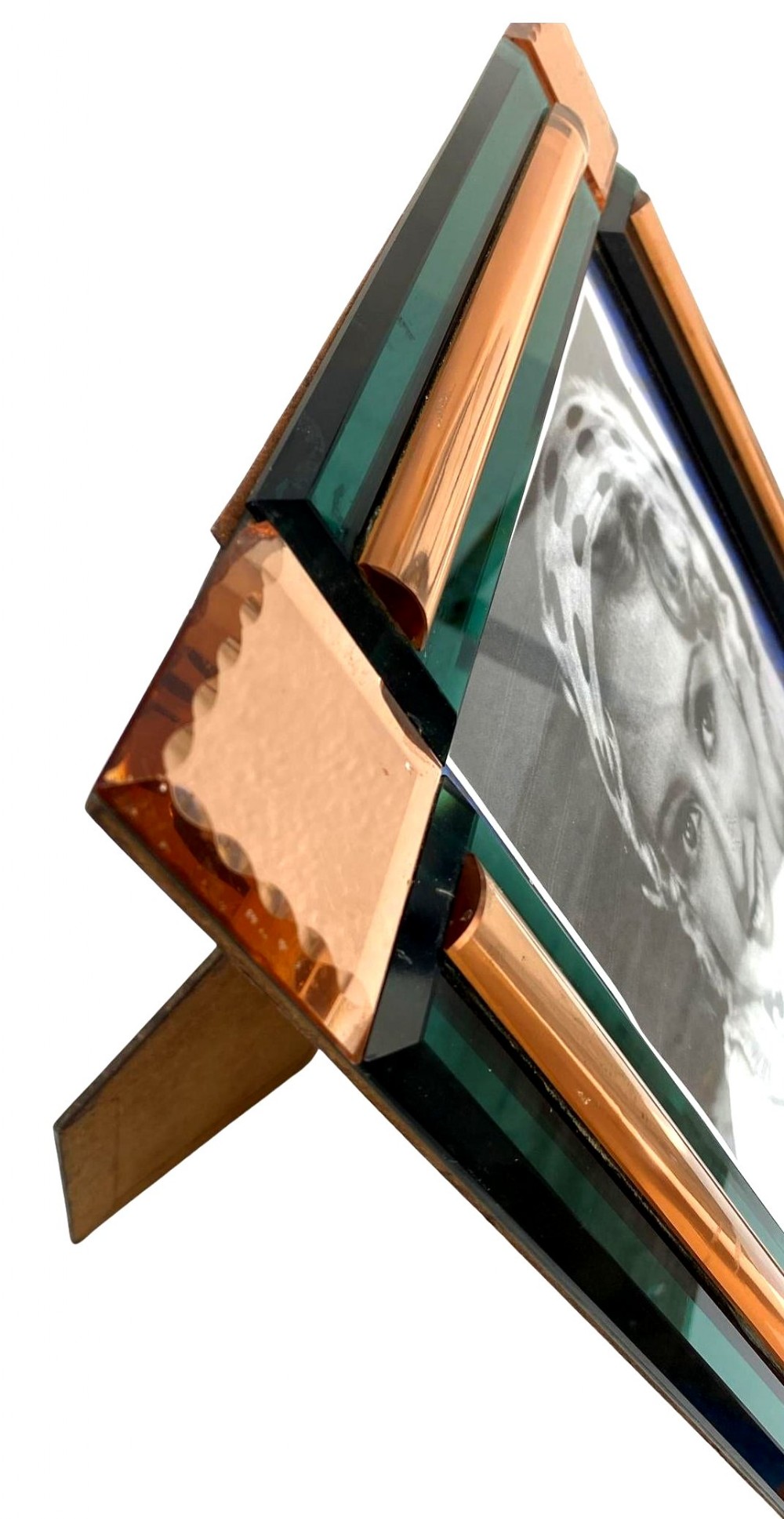 Art Deco Original Peach & Green Mirrored Bevelled Glass Picture Frame, c1930