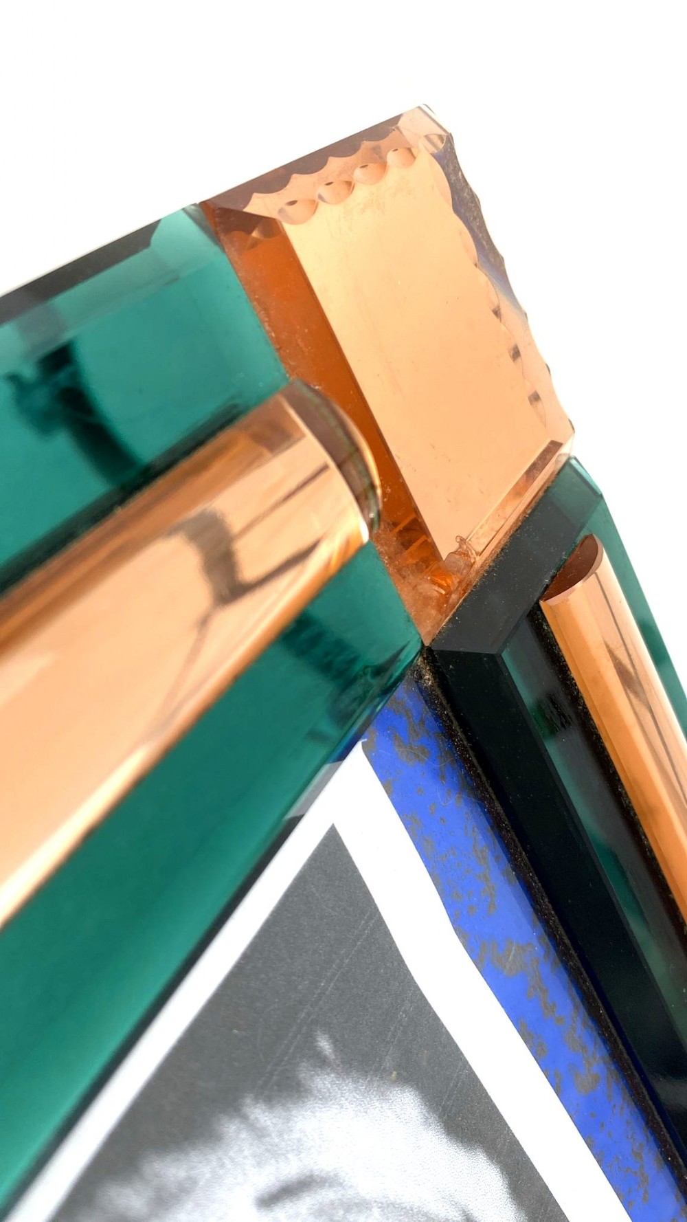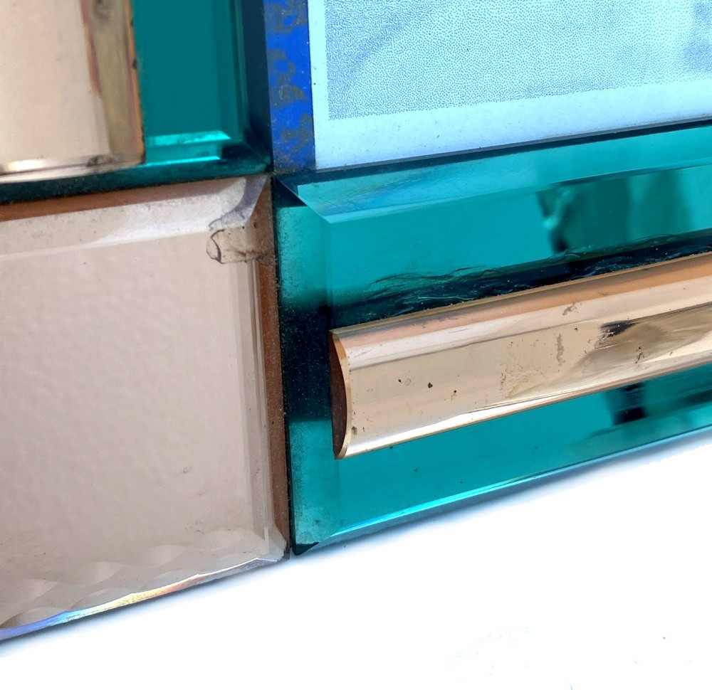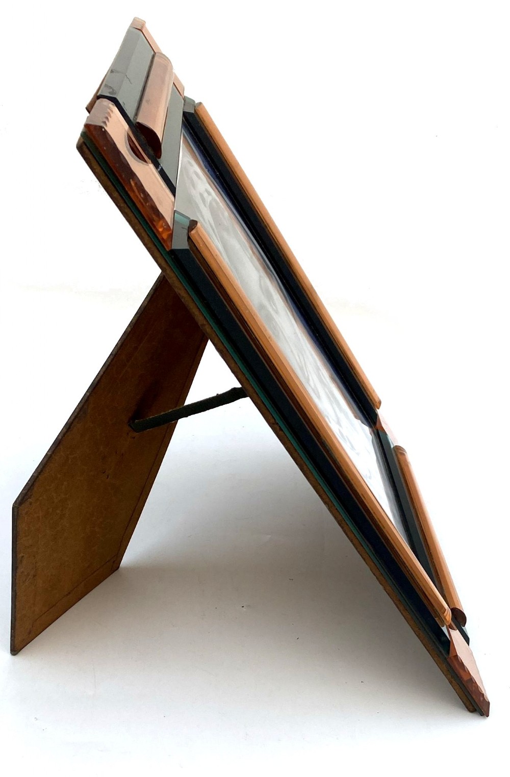 Art Deco Original Peach & Green Mirrored Bevelled Glass Picture Frame, c1930