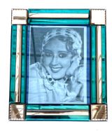 art deco original peach green mirrored bevelled glass picture frame c1930