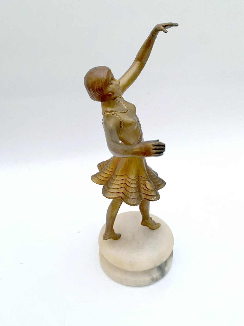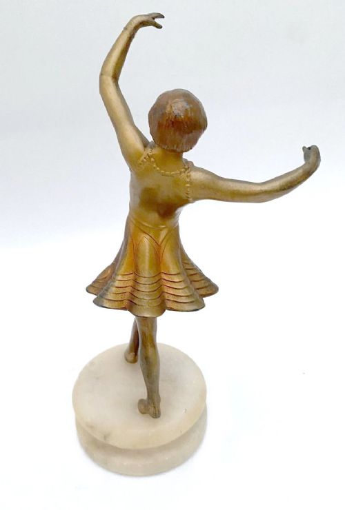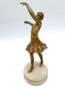 For your consideration is this wonderful 1930's Art Deco female dancer figure made from Spelter and gilded on top. She rests on a solid Belgian marble base . Lovely detailing and in good condition.