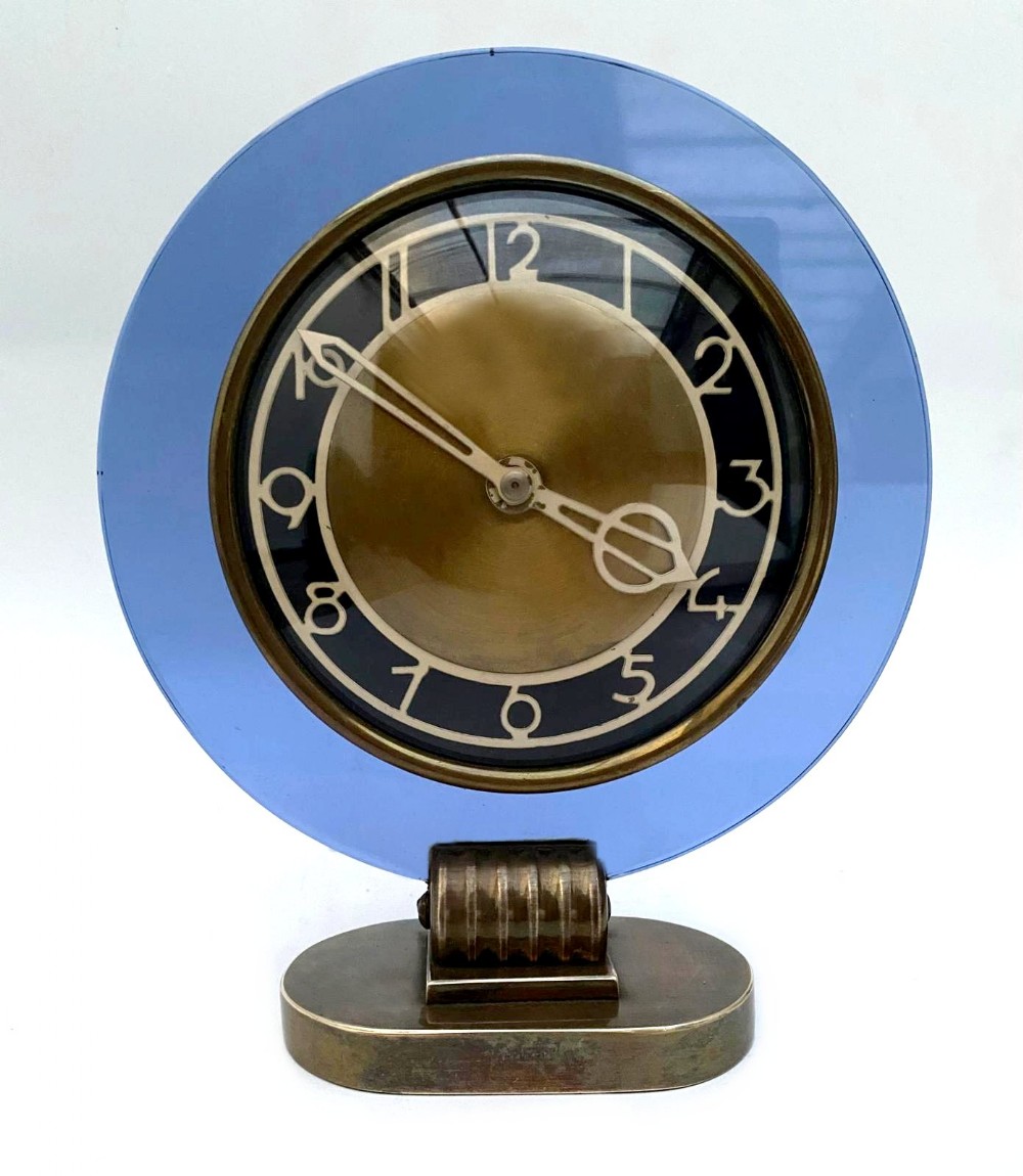 rare model modernist art deco blue mirror clock circa 1935