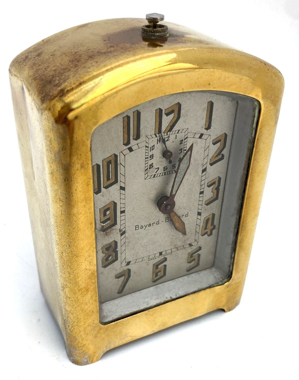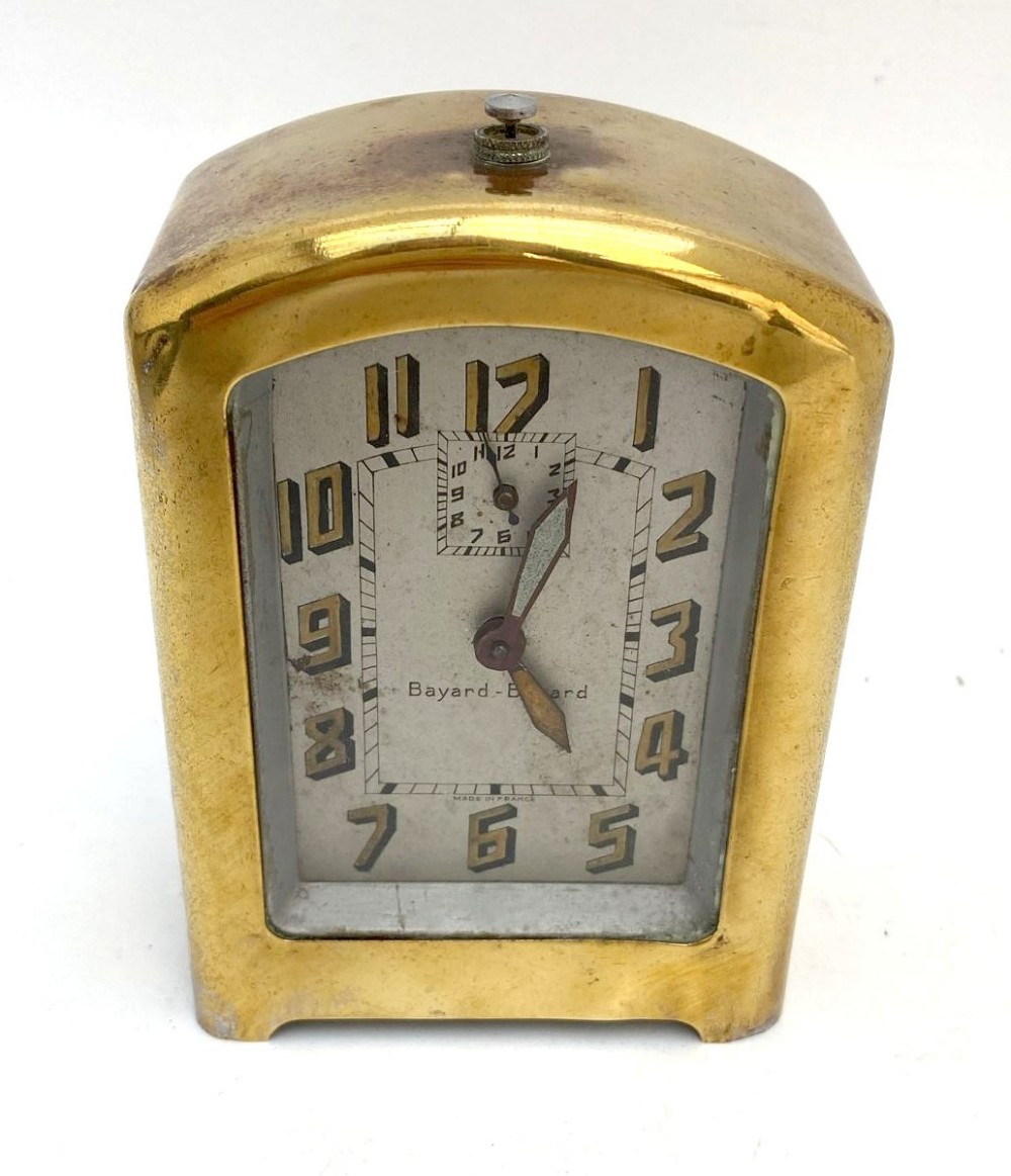 Art Deco Brass Wind Up Clock By Bayard, French, c1930