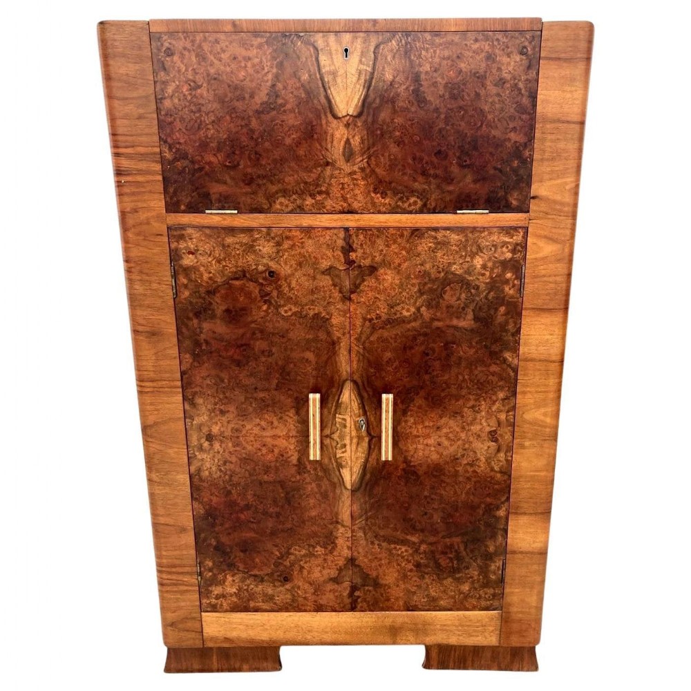 Art Deco Figured Walnut Cocktail Drinks Cabinet, c1930