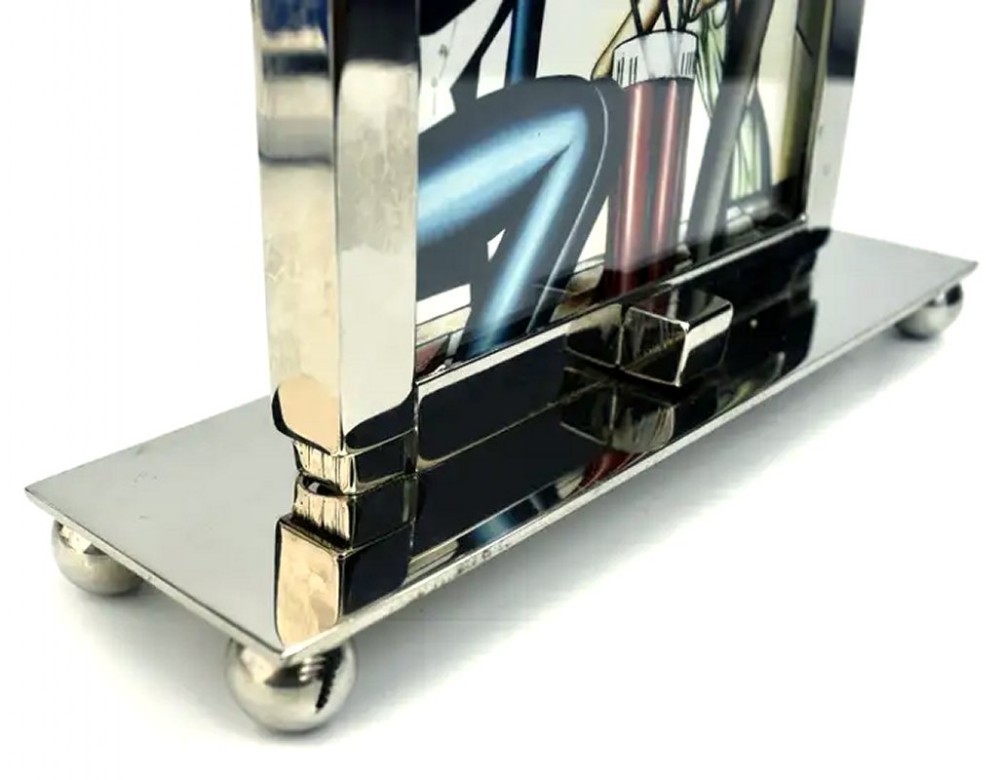 Super stylish 1930's Art Deco Modernist picture frame in chrome and glass. The frame has two pieces of glass which slot into the chrome stand allows an image to be displayed both sides of the free standing frame. Ideal size and perfect for any setting. Very good vintage condition, with no tarnishing or pitting. Originates from Germany and is of very good quality and deceptively heavy for its Size. FREE UK Mainland delivery UK customers: we want you to be delighted with your purchases from us and so we offer a full money back guarantee (items must be returned within 14 days in same condition as when sent) if you are not fully satisfied with your purchases from us for what ever reason and would like to return them. Please note : Shipping costs are not refundable. Refunds are only issued once an item has been returned back to us. Refunds are issued within 48 hours in receipt of return.