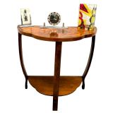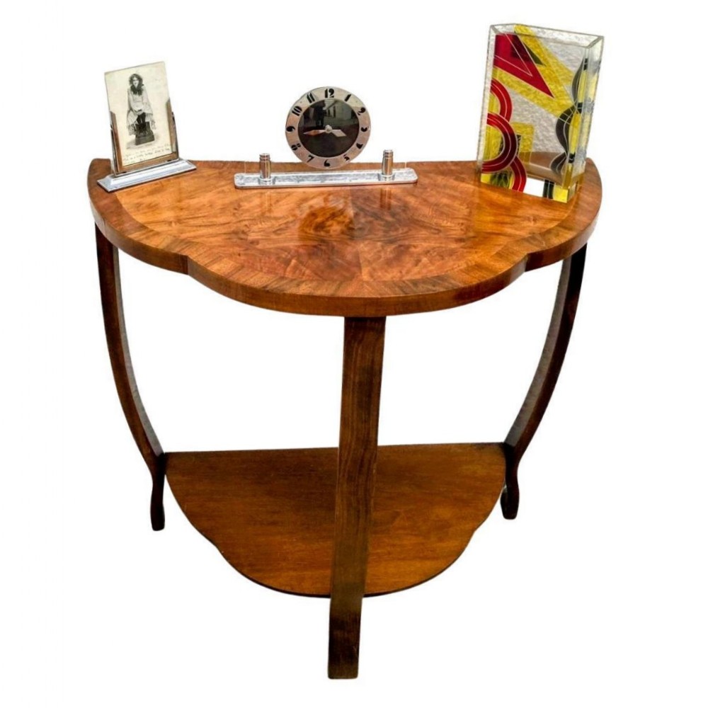 For your consideration is this 1930s Art Deco console table in beautiful walnut veneers. Ideal size for modern use, either to use as focal point for a room with either flowers or a sculpture or perhaps more traditionally as a telephone table. This is a gorgeous looking table with superb Deco design and shape. Made in the 1930's and originates from England. Ideal size for modern day use and a easily integrated for most rooms. Medium tone walnut veneers, with feather band edging, beautifully shows off the scalloped edged top. We've had this table taken through our workshops and professionally restored and so comes to you in great condition. No defects to note. A warm satin finish that remains true to the era, a timeless Art Deco aesthetic FREE UK mainland two man delivery UK customers: we want you to be delighted with your purchases from us and so we offer a full money back guarantee (items must be returned within 14 days in same condition as when sent) if you are not fully satisfied with your purchases from us for what ever reason and would like to return them. Please note : Shipping costs are not refundable. Refunds are only issued once an item has been returned back to us. Refunds are issued within 48 hours in receipt of return.