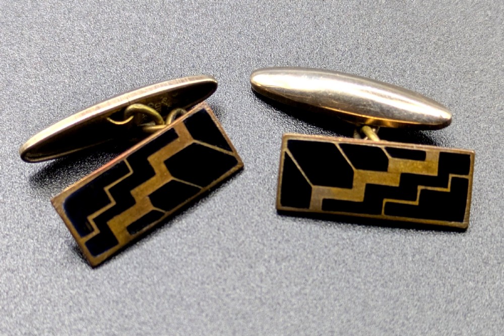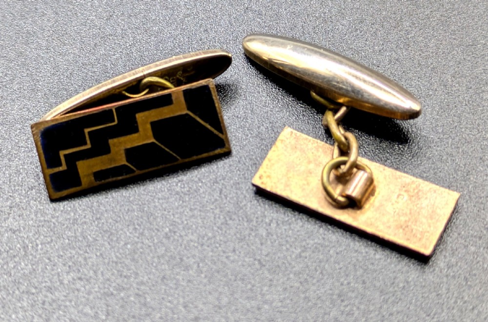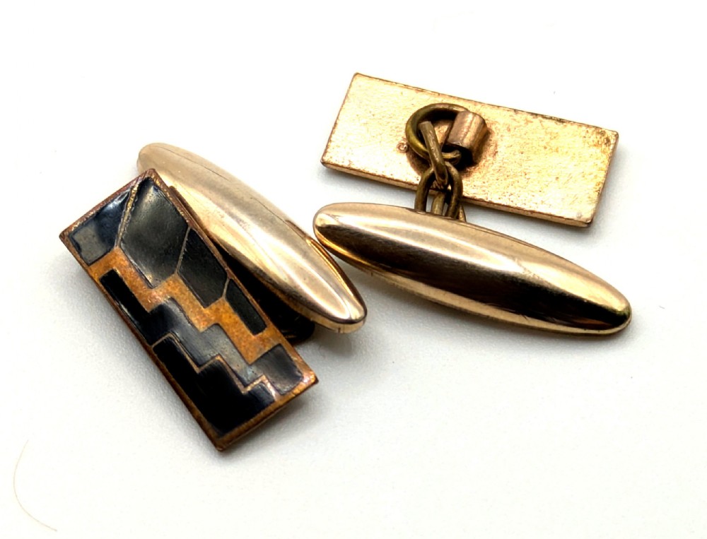 Art Deco Modernist Matching pair of Rose Gold Tone Gents Cufflinks, c1930
