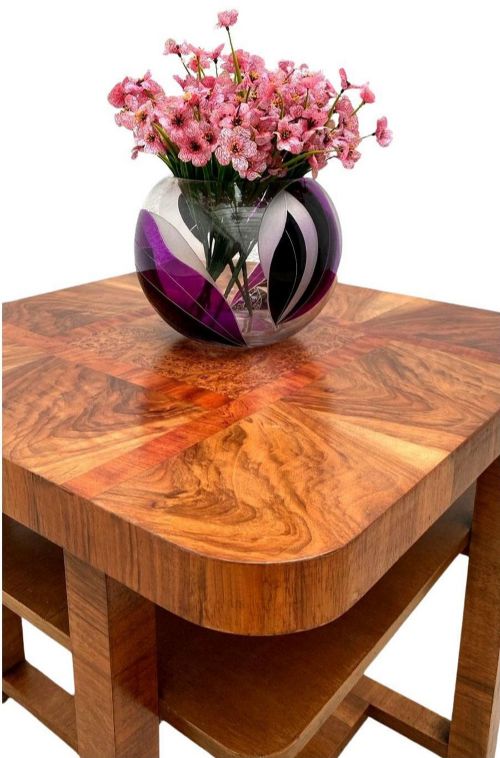 This is an original Art Deco book table, English circa 1930 offered for your consideration. A high end, rare table that not only offers the best quality in both timbers and craftsmanship but is extremely functional too. The table offers an open sectional area for books or anything of your choice to display and store. This really is an absolute delight to look at and admire, true kerb side appeal. All veneered in a lusciously grained Burl Maple, walnut and Birds eye maple a true mid-dark tone blonde in colouring that will integrate so easily with both modern and period settings. All in top condition, having newly professionally restored. Images taken in natural daylight. Offered with FREE UK mainland delivery UK customers: we want you to be delighted with your purchases from us and so we offer a full money back guarantee (items must be returned within 14 days in same condition as when sent) if you are not fully satisfied with your purchases from us for what ever reason and would like to return them. Please note : Shipping costs are not refundable. Refunds are only issued once an item has been returned back to us. Refunds are issued within 48 hours in receipt of return.