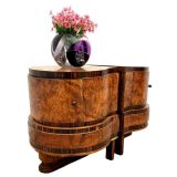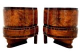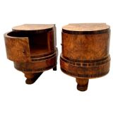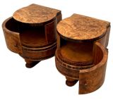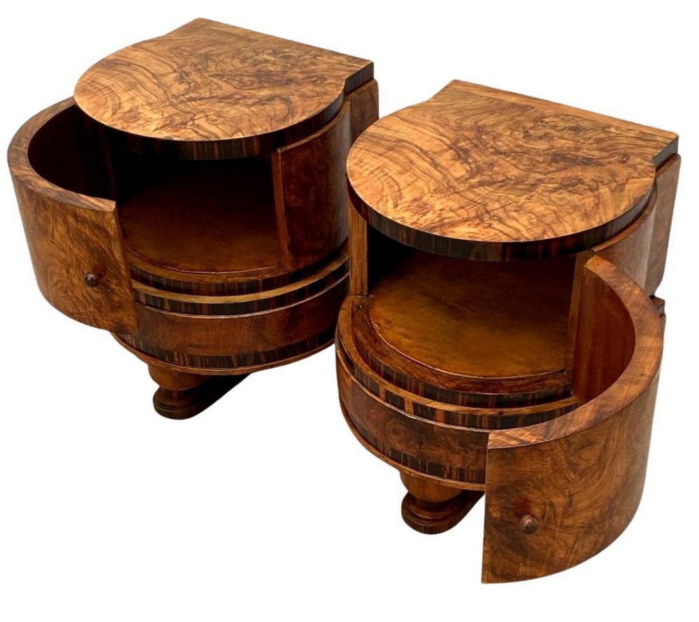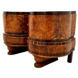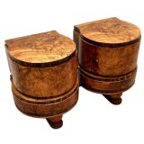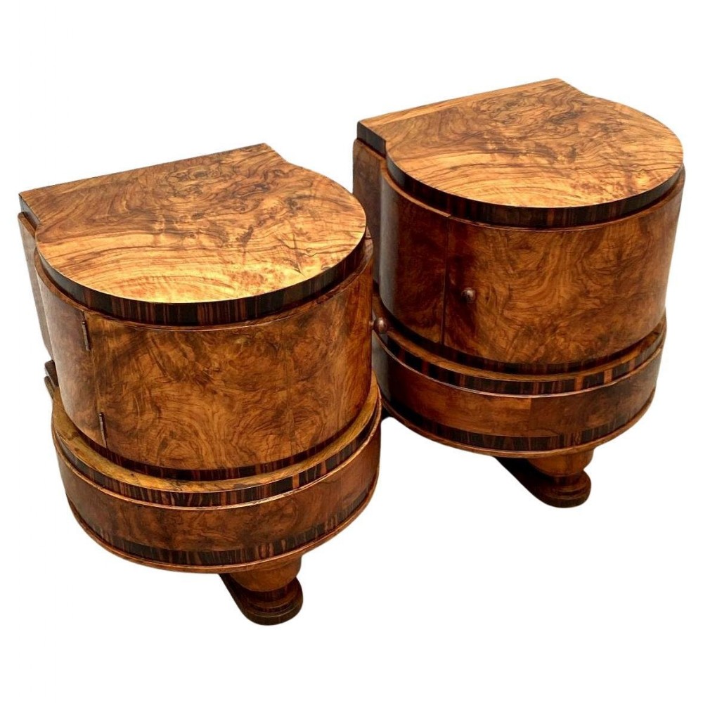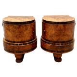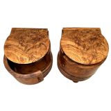 Art Deco Italian Pair of Matching Drum Shaped Bedside Table Cabinets in Walnut