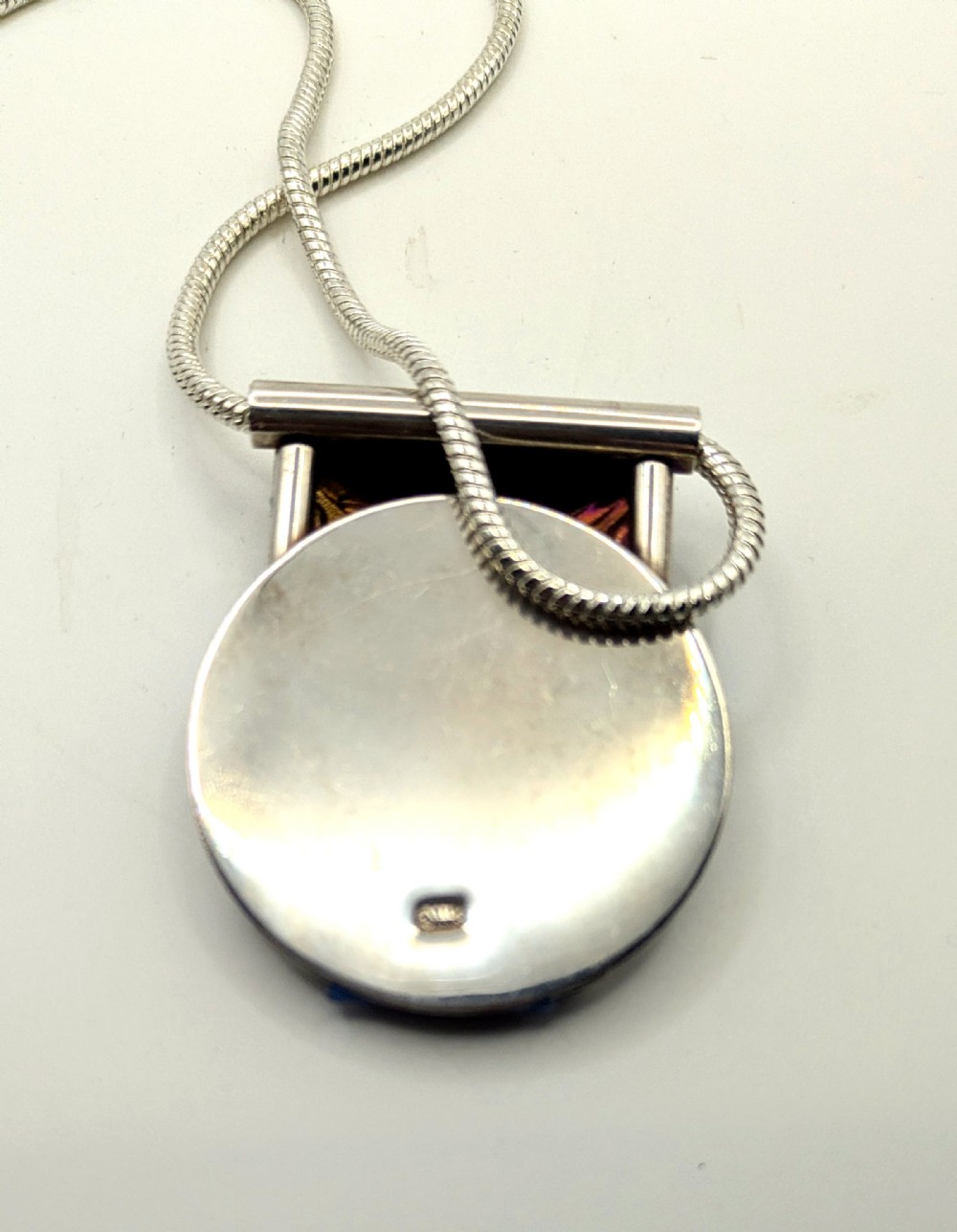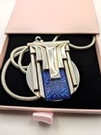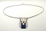 Art Deco Style Modernist Silver Plated and Enamel Necklace