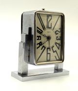 Art Deco Skyscraper Chrome Alarm Clock By DEP, French, 1930s