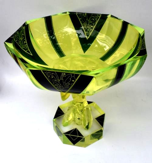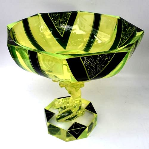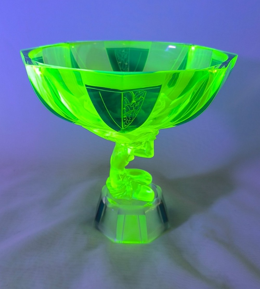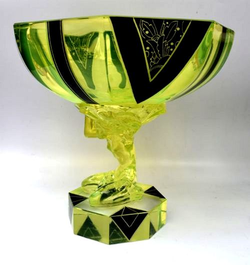 Spectacular Art Deco Uranium Glass Figural Comport Centrepiece, c1930