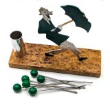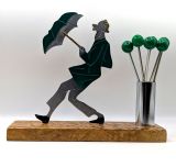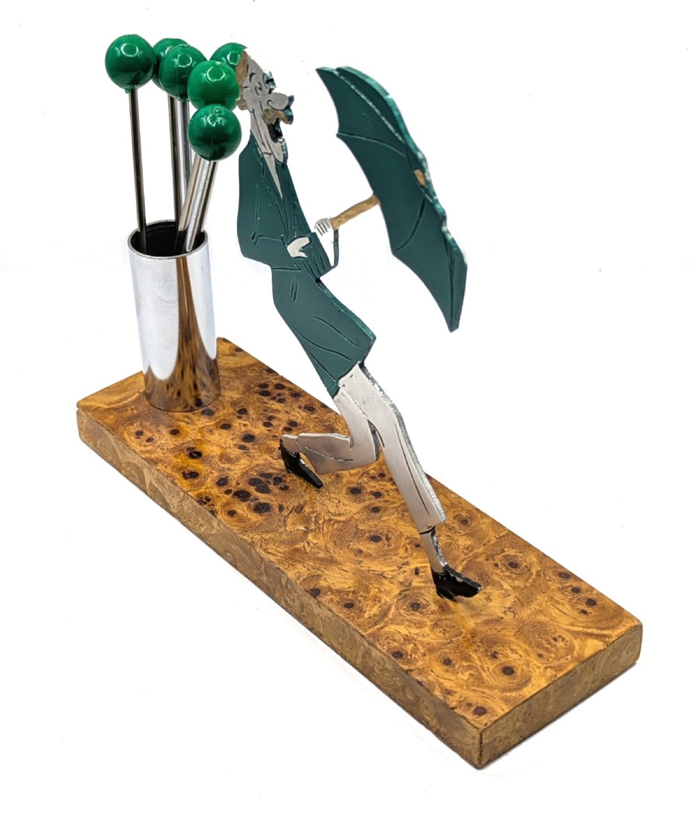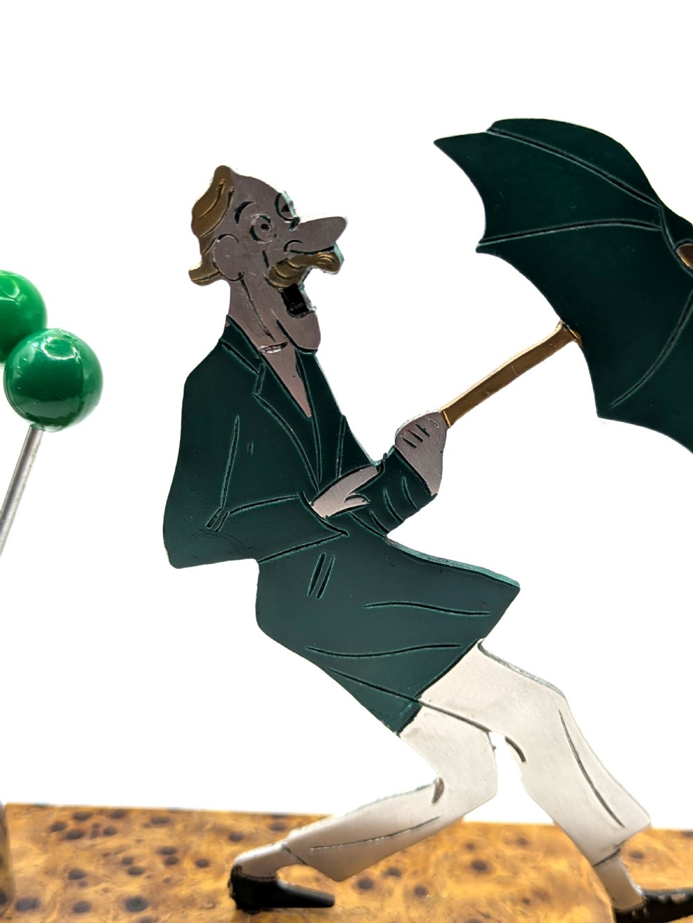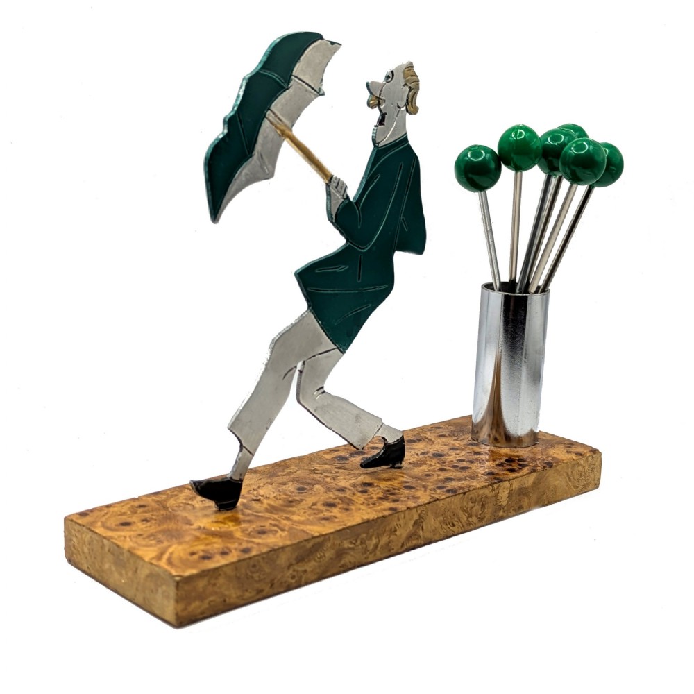 Art Deco Comical Man with Umbrella Cocktail Sticks By Sudre .c1930