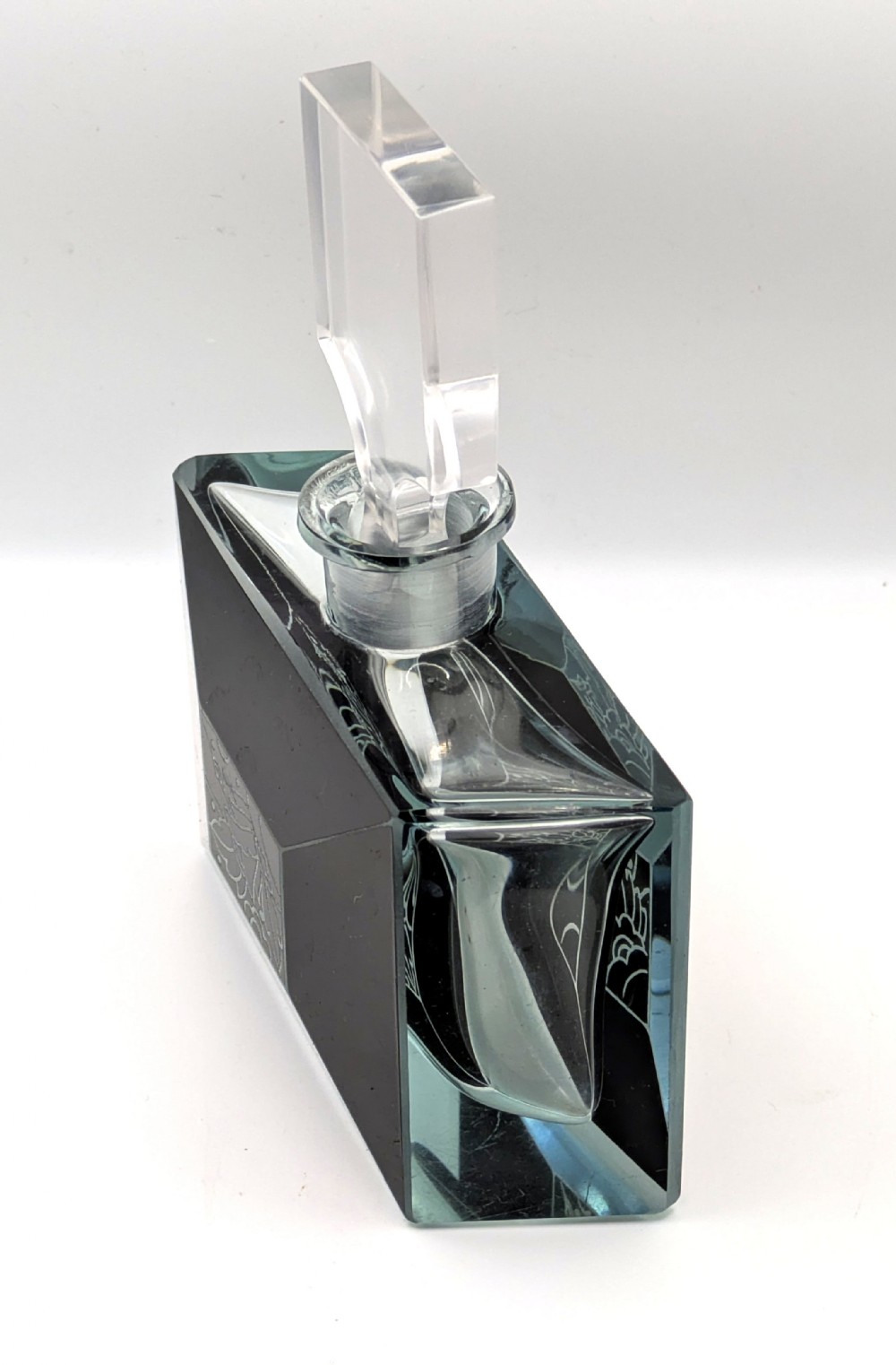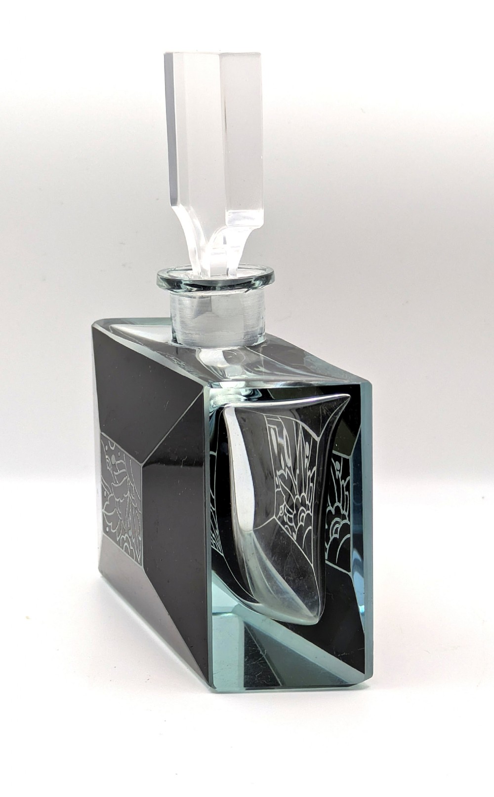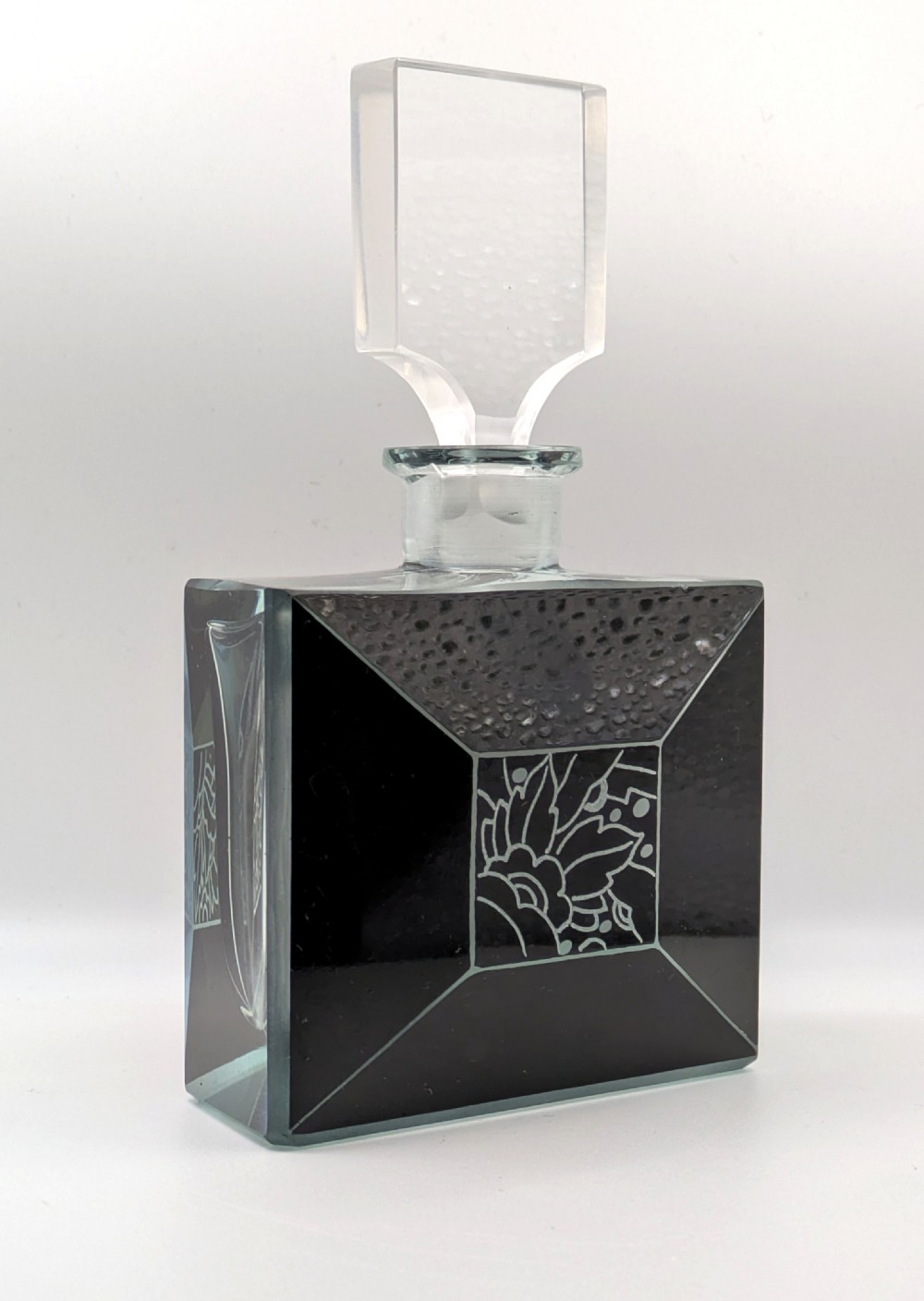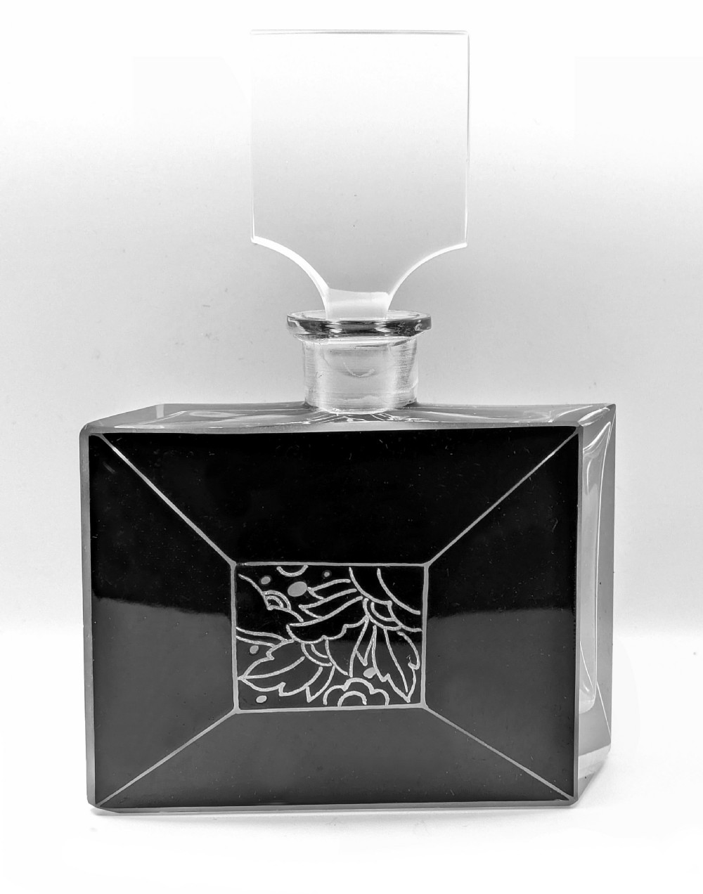 For your consideration is this wonderful 1930s Art Deco glass perfume bottle, it's an absolute beauty and such a rare find. Black enamel with etched glass in geometric forms makes up the decoration to the exterior of the bottle and it's stopper, Very much in the style of Karl Palda. Excellent condition with no flaws to note except for some very minor surface scratches on the base of the bottle. Displays beautifully and would be an asset to any bathroom or bedroom setting. Free UK mainland delivery UK customers: we want you to be delighted with your purchases from us and so we offer a full money back guarantee (items must be returned within 14 days in same condition as when sent) if you are not fully satisfied with your purchases from us for what ever reason and would like to return them. Please note : Shipping costs are not refundable. Refunds are only issued once an item has been returned back to us. Refunds are issued within 48 hours in receipt of return.