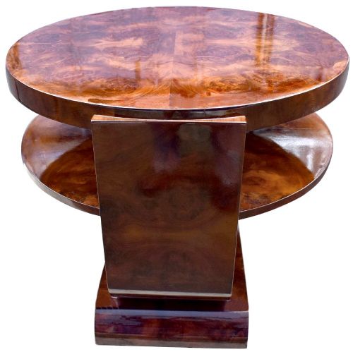Spectacular Art Deco High End Two Tier Walnut Table, c1930