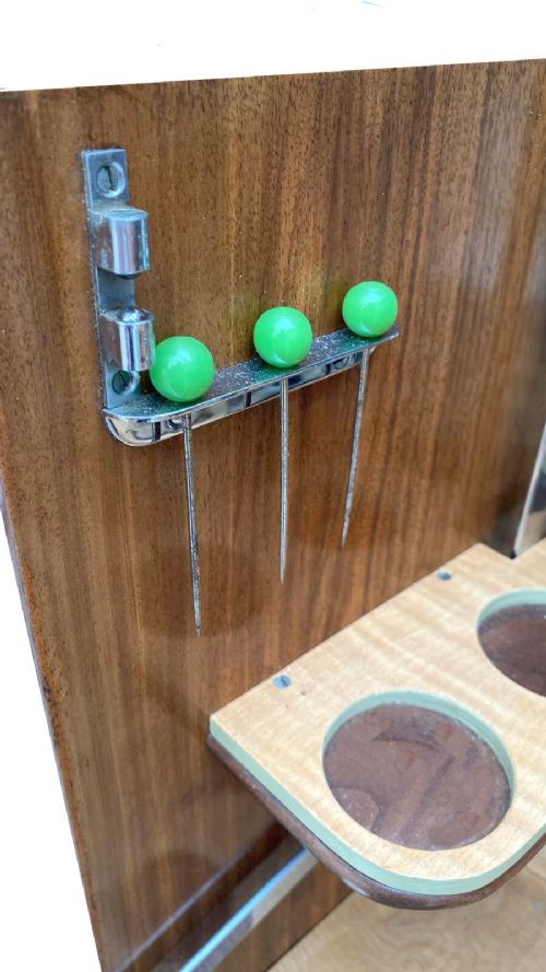 The cabinet itself is veneered in the most glorious walnut, with heavily figured patterns, the upper interior has blonde maple veneer and a mirrored backing. We've had the whole cabinet restored and so comes to you in great condition. There is some discolouration to the maple interior, only noticeable on close inspection and certainly not anything that distracts. Overall size of this cabinet is also very appealing, large enough to house all your requirements but not so big and rambling to take over a room.