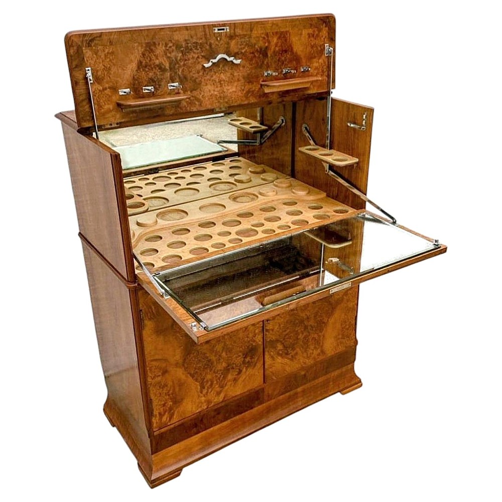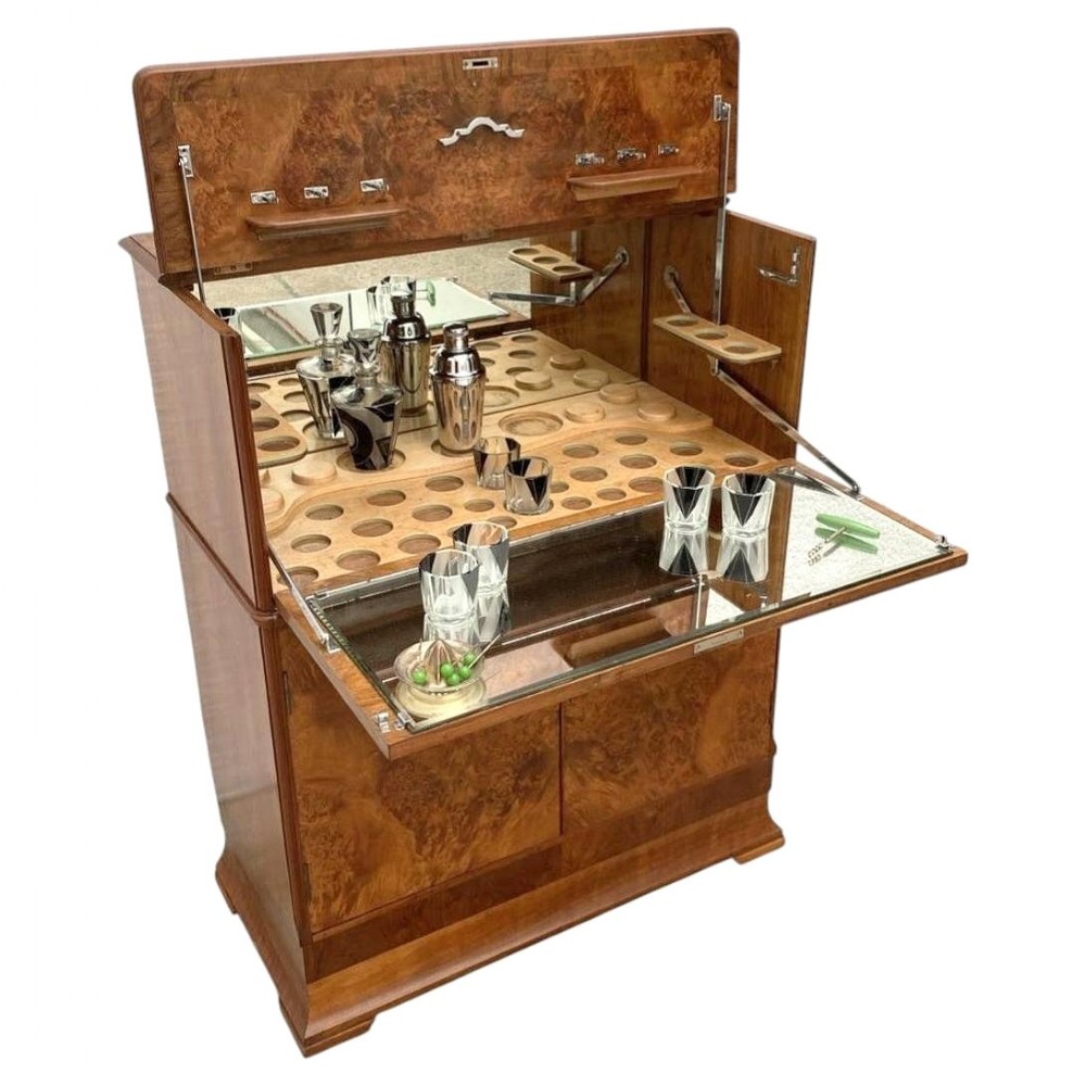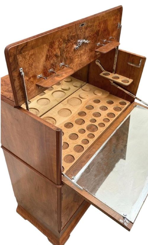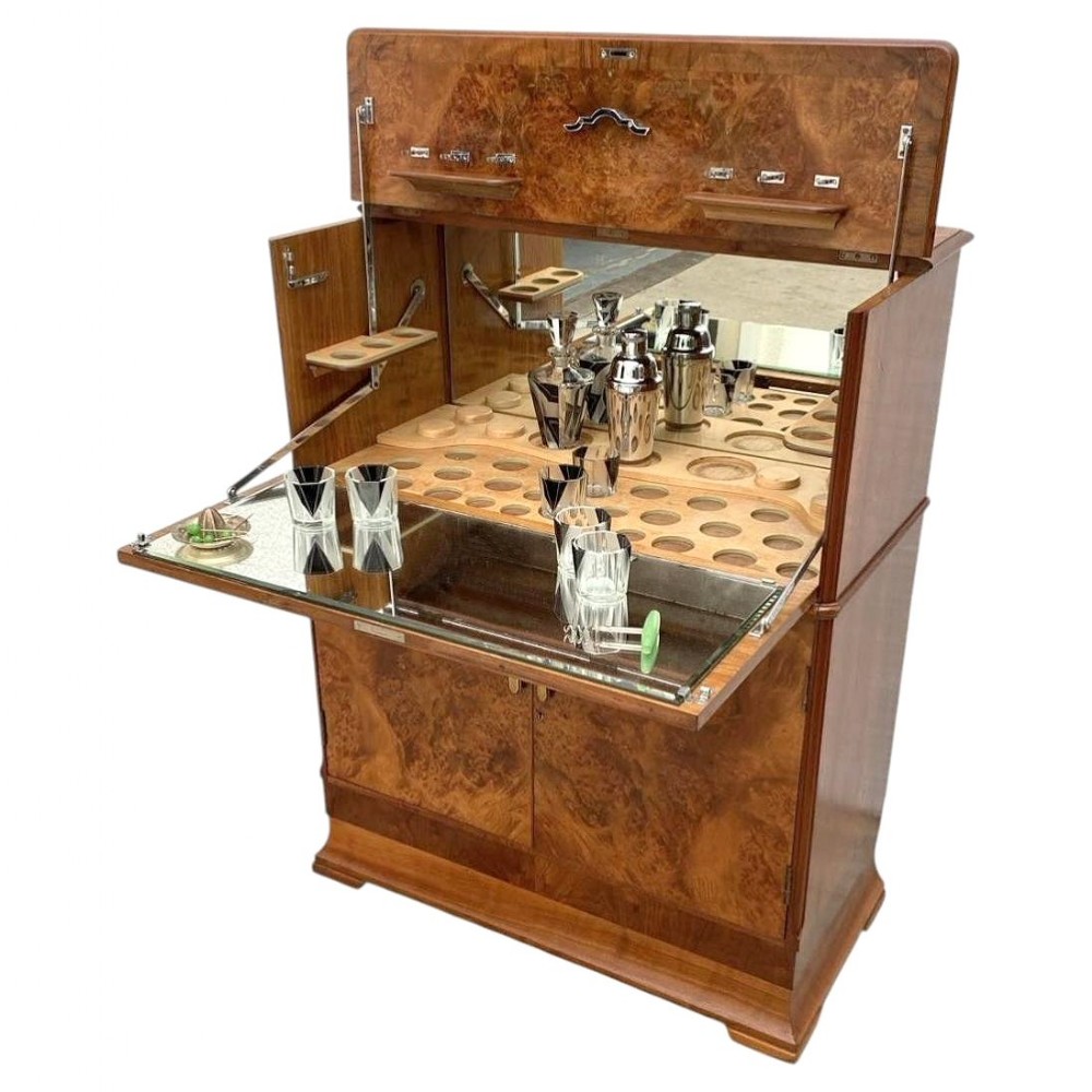 art deco figured walnut cocktail drinks cabinet c1930