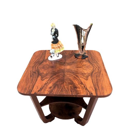 Offered with free UK mainland delivery is this Very Stylish 1930's highly figured walnut Modernist coffee/ side table in superb showroom condition having been recently professionally restored. This is a superb period example which has four curved leg supports which meet to a circular base. Wonderfully highly figured veneers and It is the veneers that are the hero of this table, very detailed and beautiful to look at. Ideal size for modern day use, so not only looks fabulous but is very functional too. Warm mid tone colouring with a satin finish, great kerb side appeal and functional too. Very sturdy and a great size for modern day use. FREE UK MAINLAND DELIVERY UK customers: we want you to be delighted with your purchases from us and so we offer a full money back guarantee (items must be returned within 14 days in same condition as when sent) if you are not fully satisfied with your purchases from us for what ever reason and would like to return them. Please note : Shipping costs are not refundable. Refunds are only issued once an item has been returned back to us. Refunds are issued within 48 hours in receipt of return.