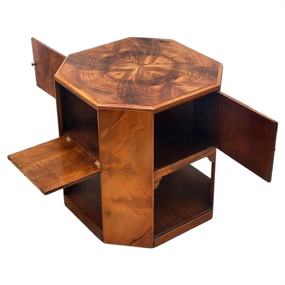 For your consideration is this rather rare and very good quality Art Deco book table . This very attractive table has the most decorative and beautifully detailed walnut veneers in a warm walnut colour. Generously sized open shelving for magazines and books or you could for display or just as a cup resting area. We've had this table fully and professionally restored and so comes to you in superb showroom condition, all ready to grace your home. First time to market, sourced from original owner who had it from new in their family since 1936. FREE UK MAINLAND DELIVERY UK customers: we want you to be delighted with your purchases from us and so we offer a full money back guarantee (items must be returned within 14 days in same condition as when sent) if you are not fully satisfied with your purchases from us for what ever reason and would like to return them. Please note : Shipping costs are not refundable. Refunds are only issued once an item has been returned back to us. Refunds are issued within 48 hours in receipt of return.