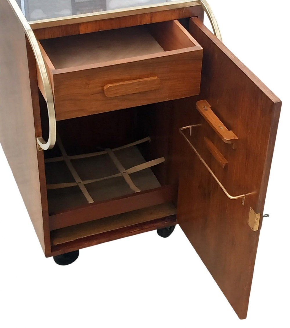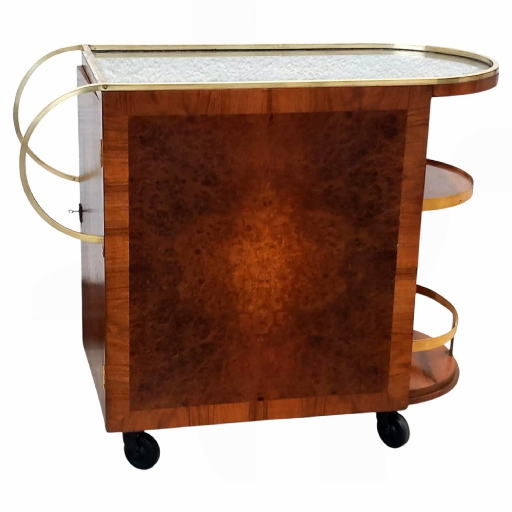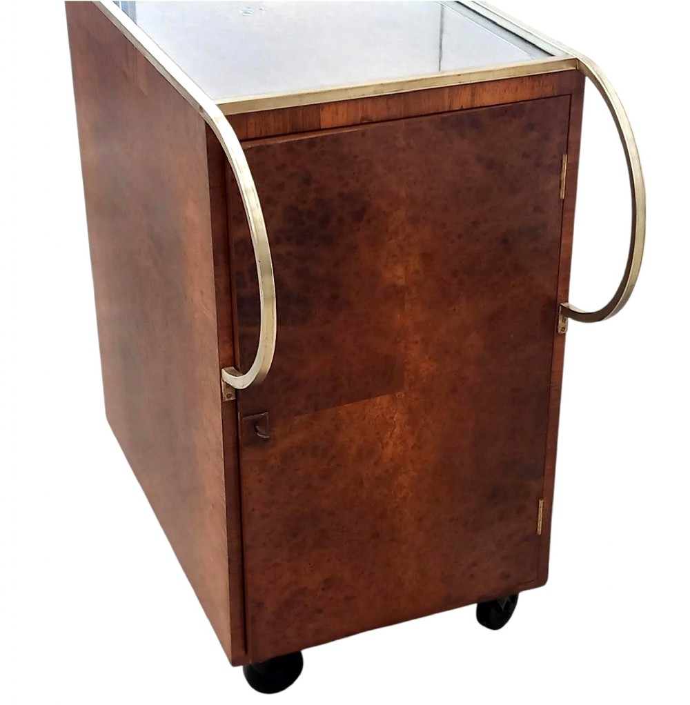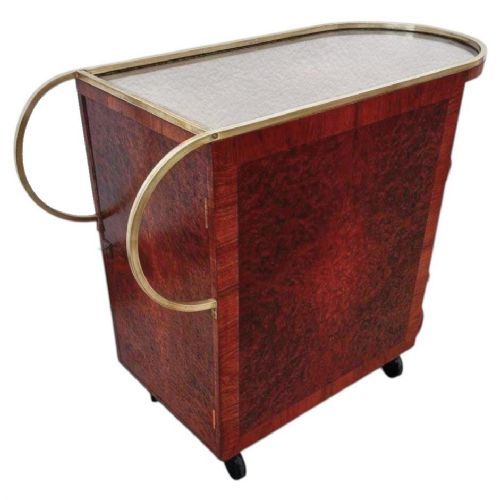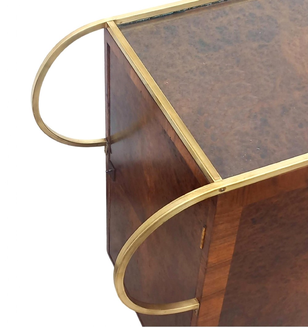 art deco burr amboyna brass cocktail bar cart french c1930