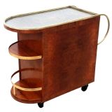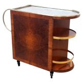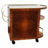 Art Deco Burr Amboyna & Brass Cocktail Bar Cart, French, c1930