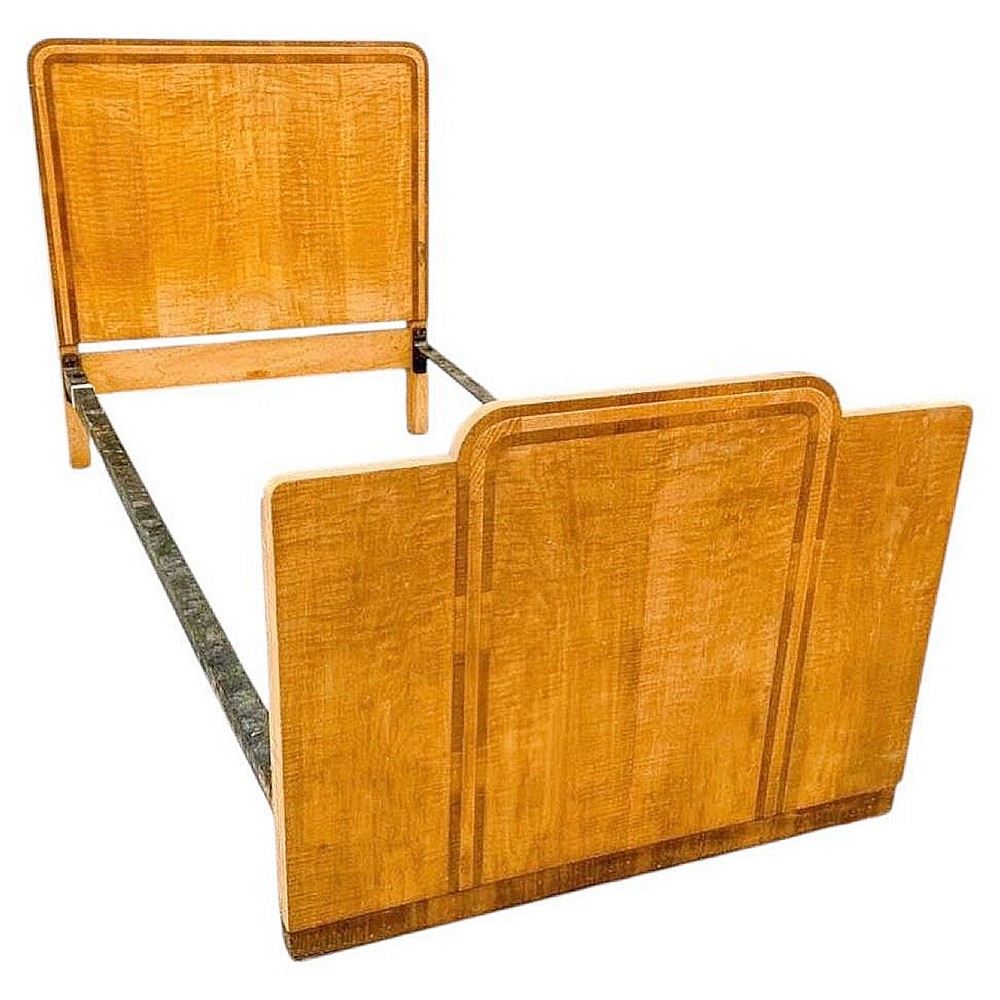 Art Deco Single Satinwood & Walnut Blonde Bed, c1930