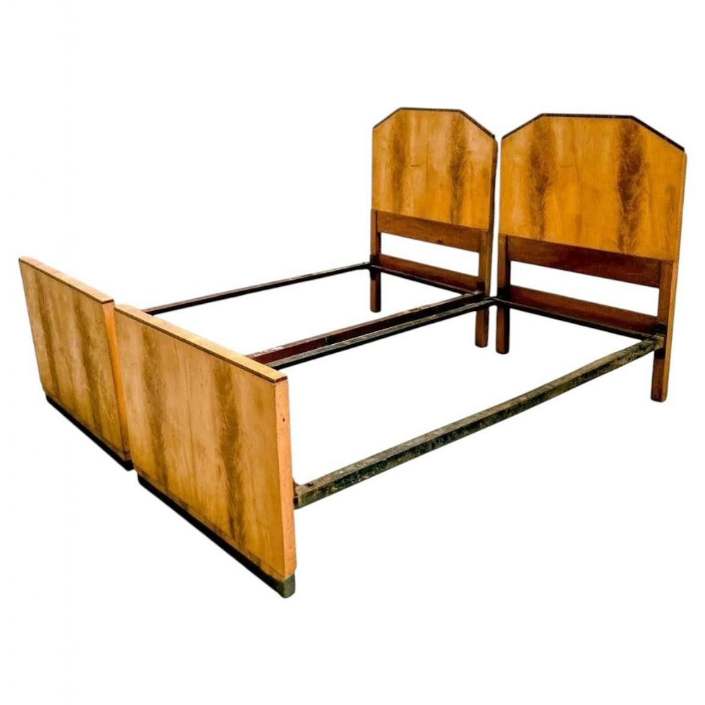 Art Deco Matching Pair of Single Beds In Satinwood & Walnut. c1930