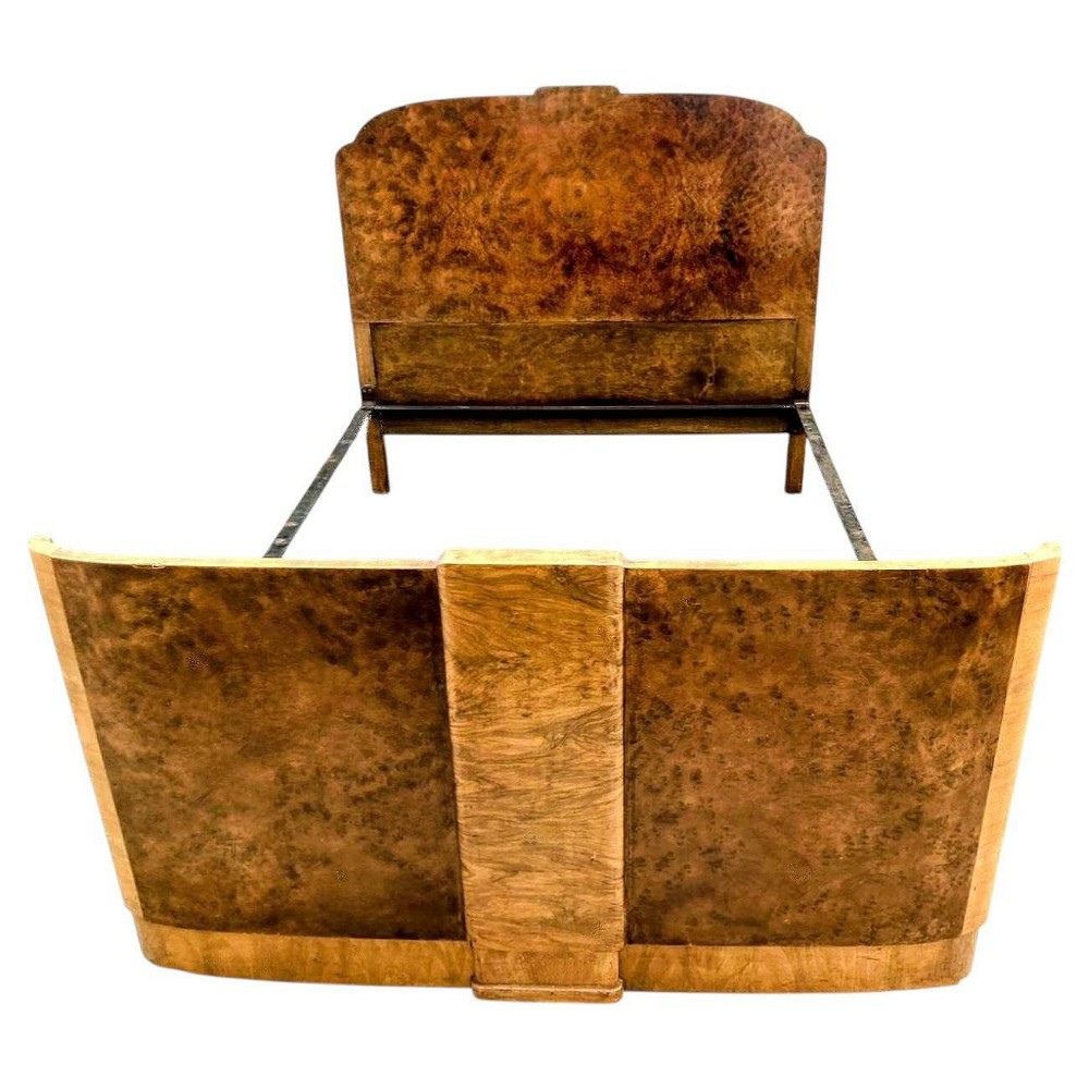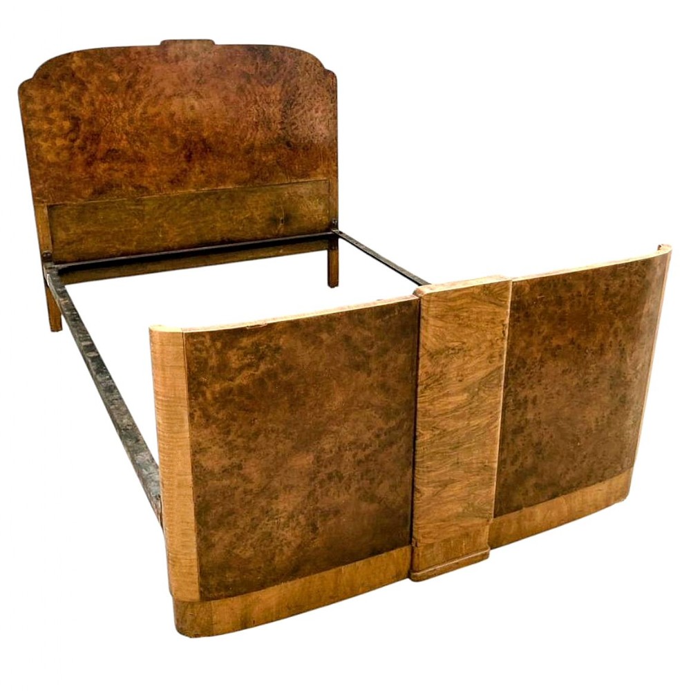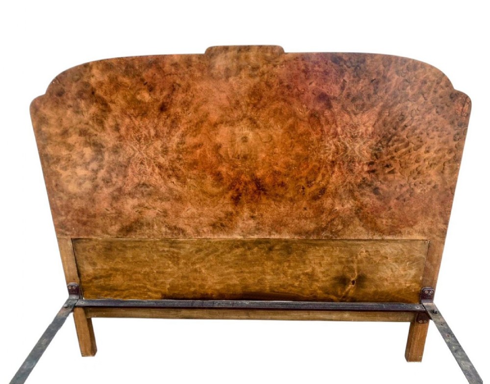 Wonderful 1930's English walnut double bed. The veneers really make this bed outstanding, book paged veneers throughout with walnut feather banding to the edges. Standard English double size so ideal for modern use. We've had this bed full restored so comes to you in excellent condition. we've also made a custom made slatted base, so all you need is your mattress and you're ready to go! A lovely addition to any Art Deco bedroom set. Footboard height 80 cm UK customers: we want you to be delighted with your purchases from us and so we offer a full money back guarantee (items must be returned within 14 days in same condition as when sent) if you are not fully satisfied with your purchases from us for what ever reason and would like to return them. Please note : Shipping costs are not refundable. Refunds are only issued once an item has been returned back to us. Refunds are issued within 48 hours in receipt of return.