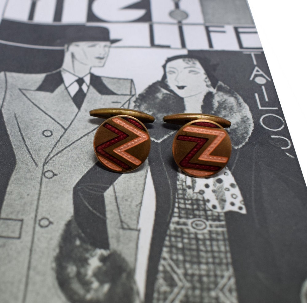 A rare find are these old new stock cufflinks from the 1930's, never used and totally original to the period, we have several pairs. Great Art Deco geometric styling and colour, can't be confused with any other era can they? Condition is great with no wear at all. Ideal for any dapper gentleman. All our Jewellery is sent out in a brand new gift box. UK customers: we want you to be delighted with your purchases from us and so we offer a full money back guarantee (items must be returned within 14 days in same condition as when sent) if you are not fully satisfied with your purchases from us for what ever reason and would like to return them. Please note : Shipping costs are not refundable. Refunds are only issued once an item has been returned back to us. Refunds are issued within 48 hours in receipt of return.