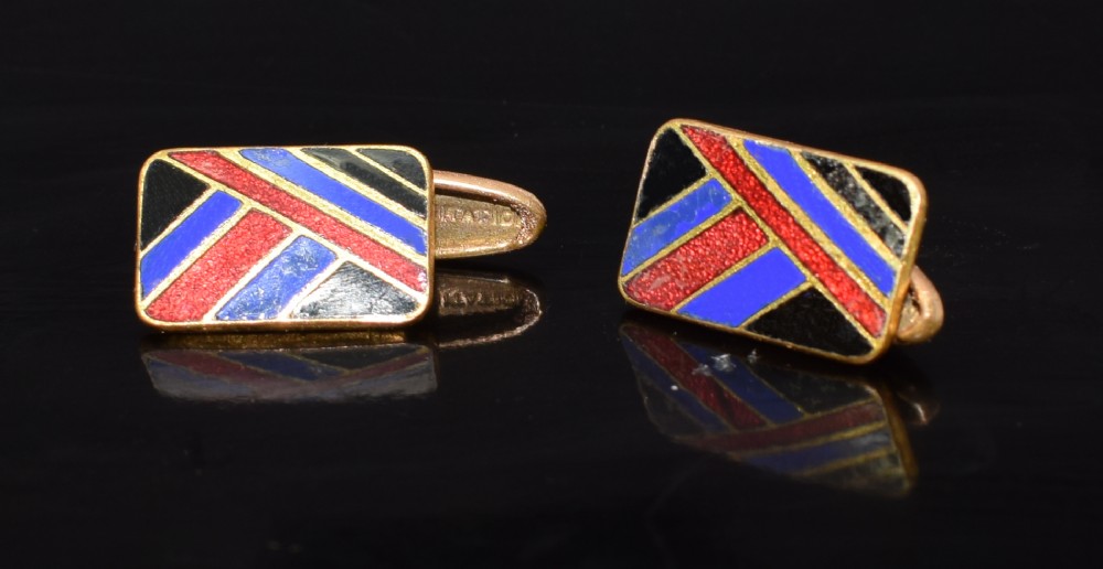 Art Deco Gents English Enamel Cufflinks, c1930