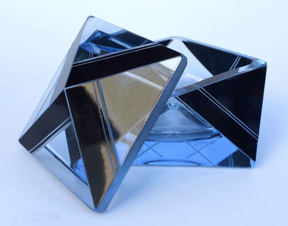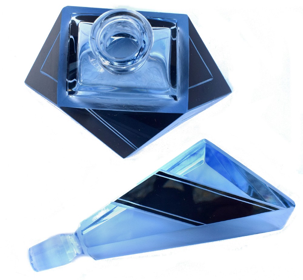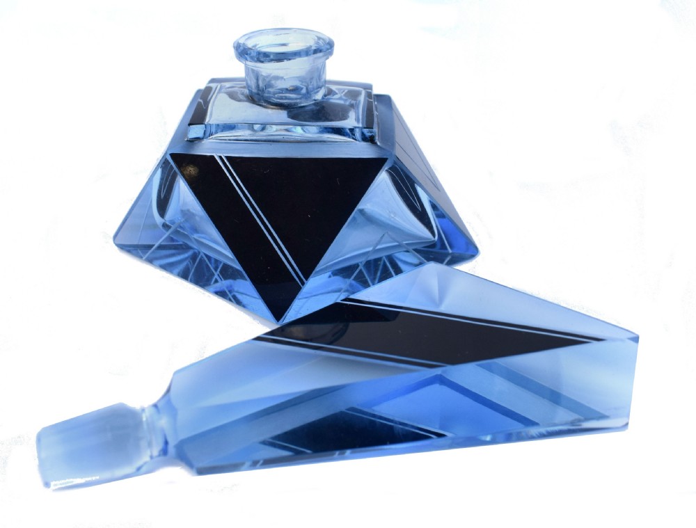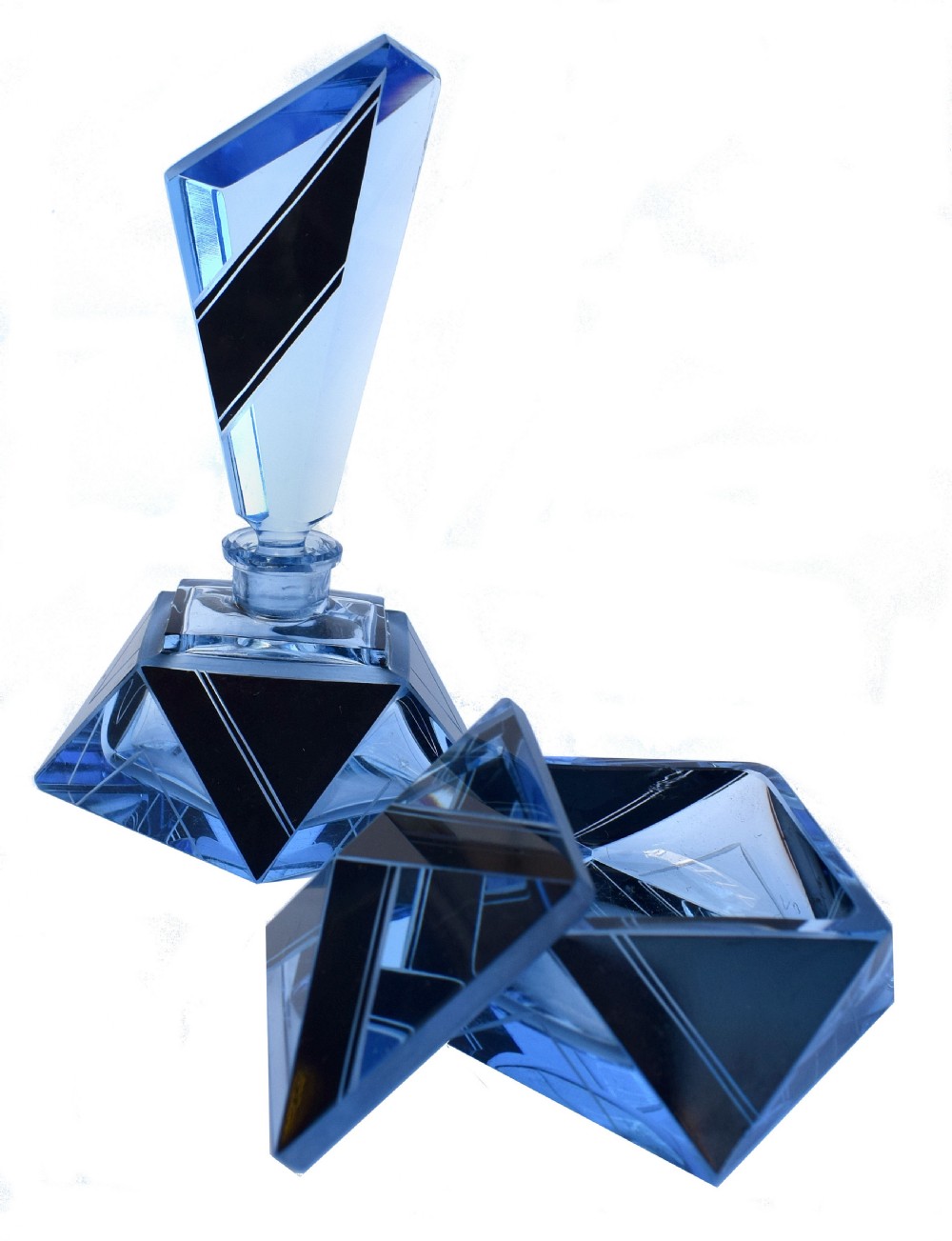 Art Deco Blue Glass Perfume Bottle & Powder Box