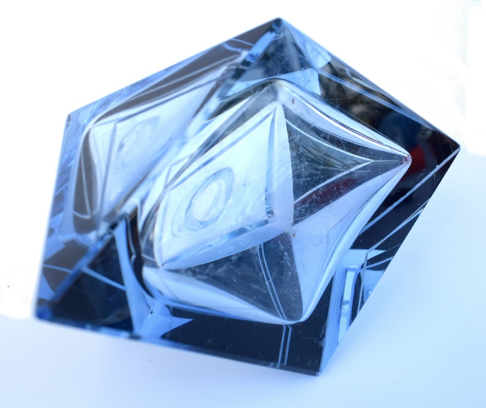 Stunning Art Deco blue glass perfume scent bottle with it's matching powder box. Beautiful deep blue glass, very collectable dating from the 1930s. Czech in origin. Superb black enamelled geometric design with etched glass detailing. Thoroughly checked over and can't see any chips, so in superb condition. The inside of the bottom of the perfume bottle and trinket is a little cloudy and there are some very minor surface marks on the underside which is just normal signs of use from pieces of this age - see pics. It measures a whooping 30.5 cm high. Condition is excellent with minimal signs of any age, just a tiny residue of perfume to the base. Perfume bottle height 18.5 width 11 cm depth 9 cm trinket box height 6 diameter 10 cm Free delivery within the UK, why not check out our website were you will see over a thousand original art deco pieces for sale including one of the largest selections of Art Deco clocks available on the internet today. www.artdecoworld.co.uk UK customers: we want you to be delighted with your purchases from us and so we offer a full money back guarantee (items must be returned within 14 days in same condition as when sent) if you are not fully satisfied with your purchases from us for what ever reason and would like to return them. Please note : Shipping costs are not refundable. Refunds are only issued once an item has been returned back to us. Refunds are issued within 48 hours in receipt of return.