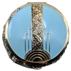 Very distinctive and stylish 1930's Art Deco enamel decorated ladies powder compact with with a faux shagreen design down the centre. The compact is stamped 'Made in Japan'. Inside is the original puff and metal sifter and are in superb condition. The overall condition is very good, with the only minor signs of wear that one would expect. FREE UK MAINLAND DELIVERY UK customers: we want you to be delighted with your purchases from us and so we offer a full money back guarantee (items must be returned within 14 days in same condition as when sent) if you are not fully satisfied with your purchases from us for what ever reason and would like to return them. Please note : Shipping costs are not refundable. Refunds are only issued once an item has been returned back to us. Refunds are issued within 48 hours in receipt of return.