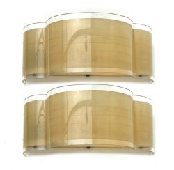 For your consideration are these fabulous set of Art Deco glass wall light sconces, in a rare set of four. The satin glass slip shades sit snugly inside heavy chrome wall brackets with a single bulb holder behind. These give a fabulous effect when lit against the wall. Really stylish set good vintage condition. The thick heavy frosted glass has a geometric pattern in relief, really oozing quality. Lemon yellow glass , offering a bright and splash of vibrant Deco colour iconic from this era. These lights look both impressive when switched on or off.