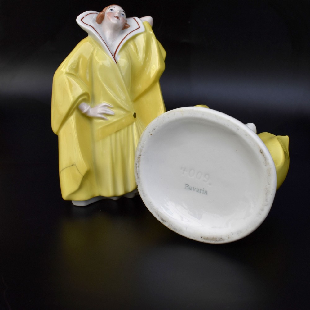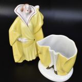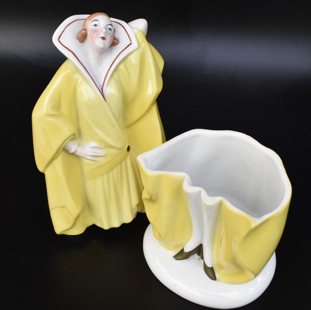 Art Deco Porcelain Flapper Girl Tall Dresser Jar/Powder Jar, c1930